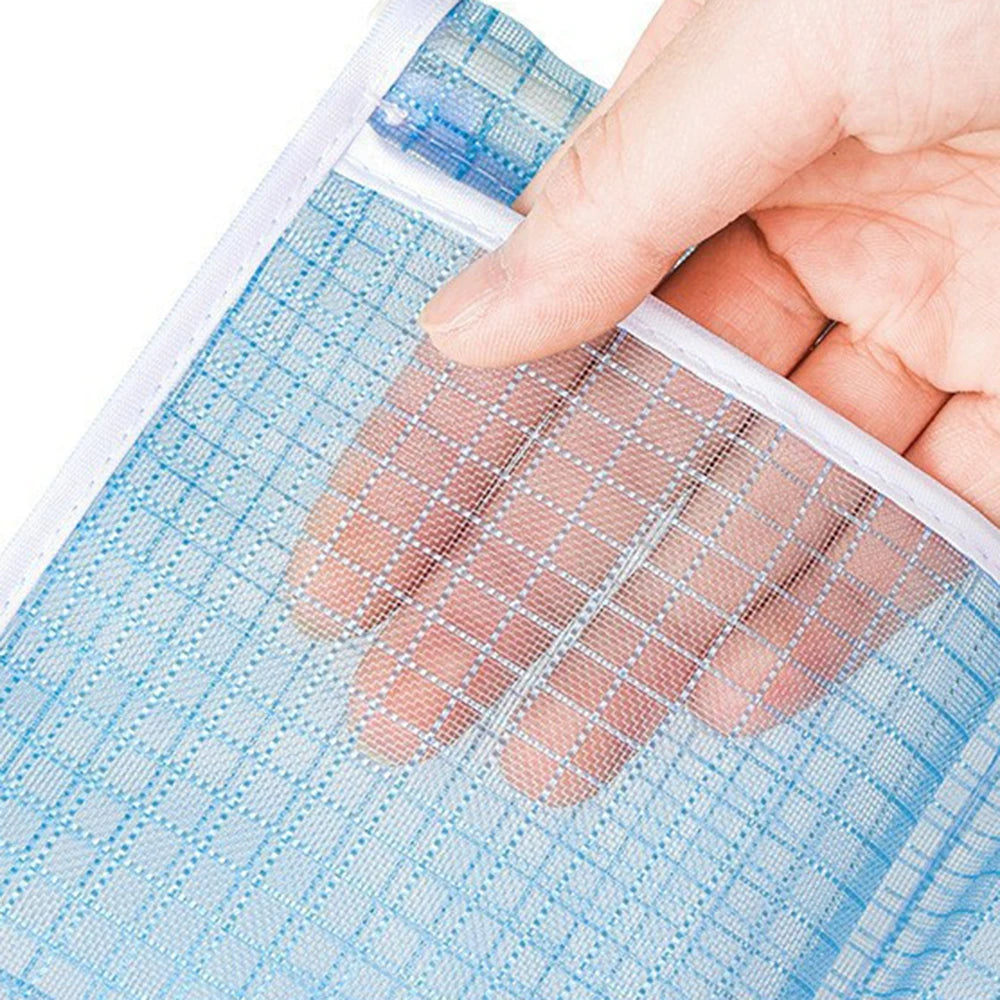 Dual Compartment Fridge Hanging Organizer - Mesh Storage Bags for Fruits/Snacks, No Hook Space Saving Bin with Clear Window