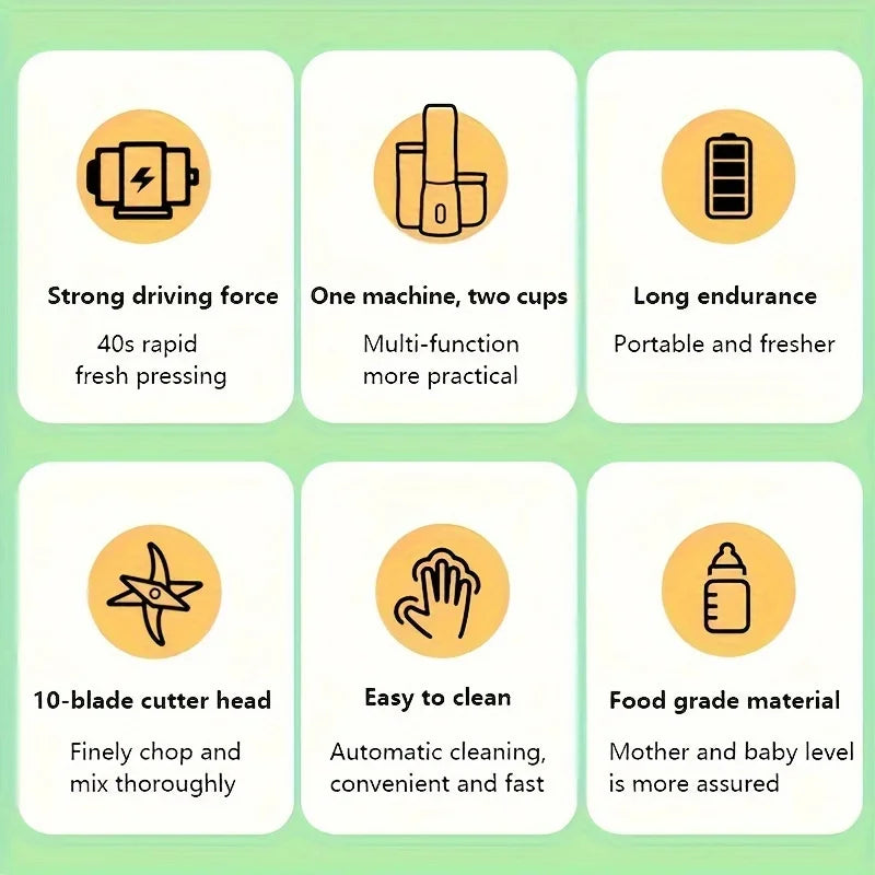 Electric Blender Juicer USB Fast Rechargeable Mixer Fresh Fruit Grinder Portable Multifunction Cup Shakes Smoothie Maker