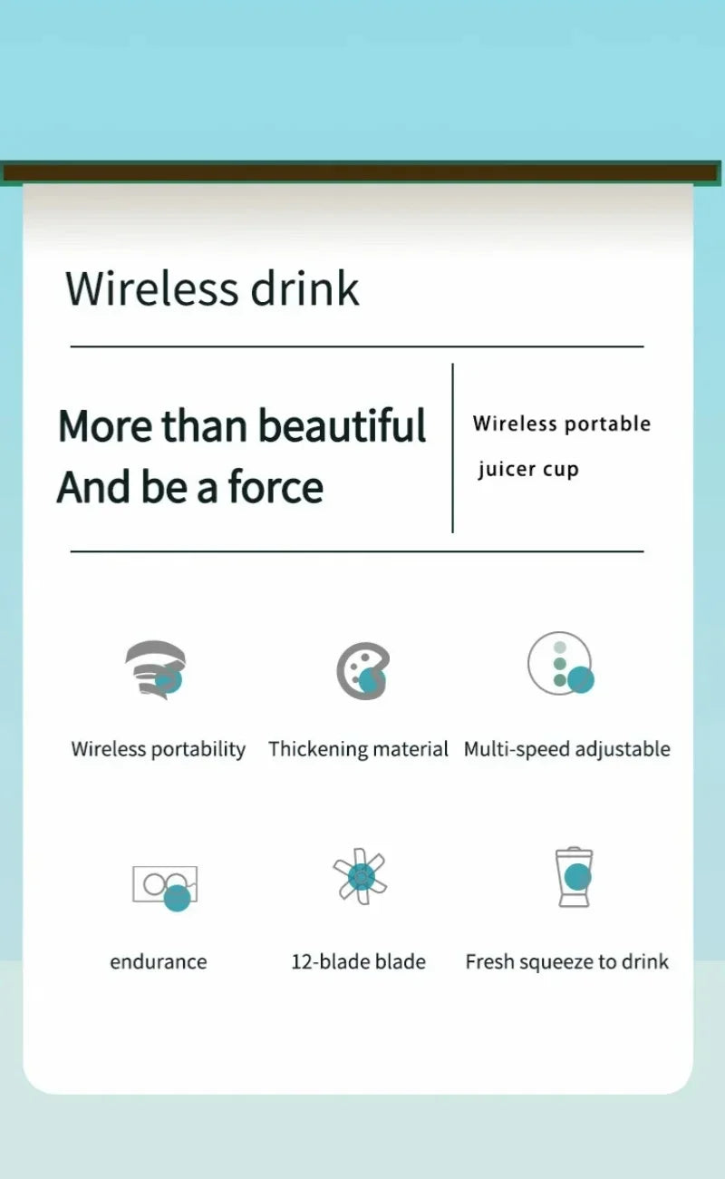 Electric Blender Rechargeable Portable Juicer USB Charging Hand Blender Electric Fruit Juicer 12 Blades Crushed Ice Juicer Cup