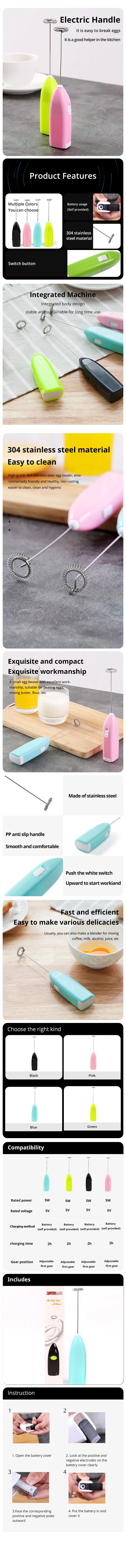 Electric Egg Beater Milk Frother For Coffee Household Kitchen Mini Stainless Steel Coffee Milk Tea Blender