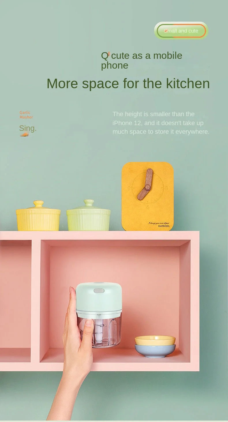 Electric Garlic Chopper Portable Veggie Chopper with 100 ml Spoon Garlic Grinder Masher Onion Chopper Blender to Vegetable