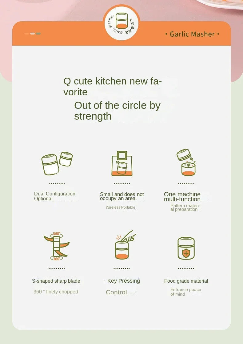 Electric Garlic Chopper Portable Veggie Chopper with 100 ml Spoon Garlic Grinder Masher Onion Chopper Blender to Vegetable