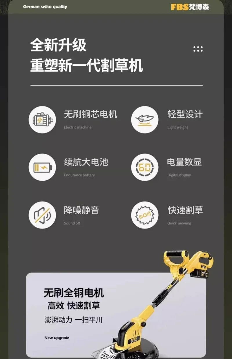 Electric lawn mower Small household lawn Lithium battery rechargeable mower High power lawn mower