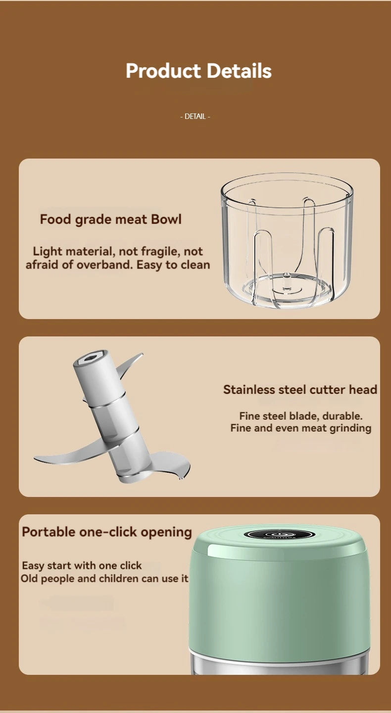 Electric Mini Garlic Chopper USB Meat Grinder - Sturdy and Durable Kitchen Tool for Crushing Garlic, Ginger, and Vegetables