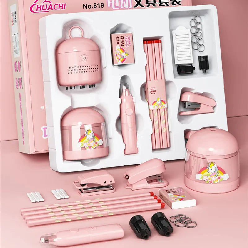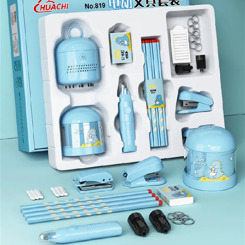 Electric Pencil Sharpener Electronic Stationery Set Erasers Mechanical Kit Student Set Box Gifts for Children School Supplies