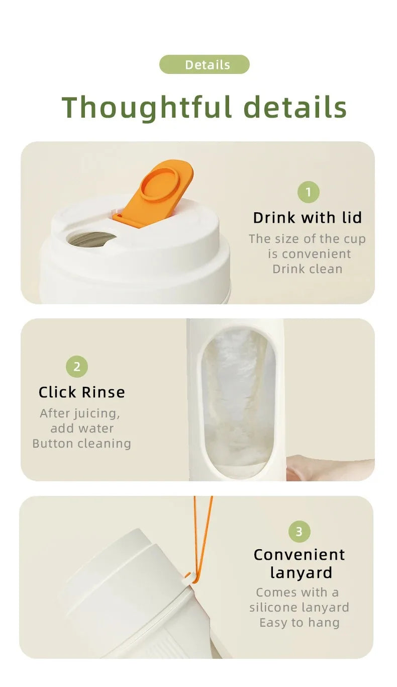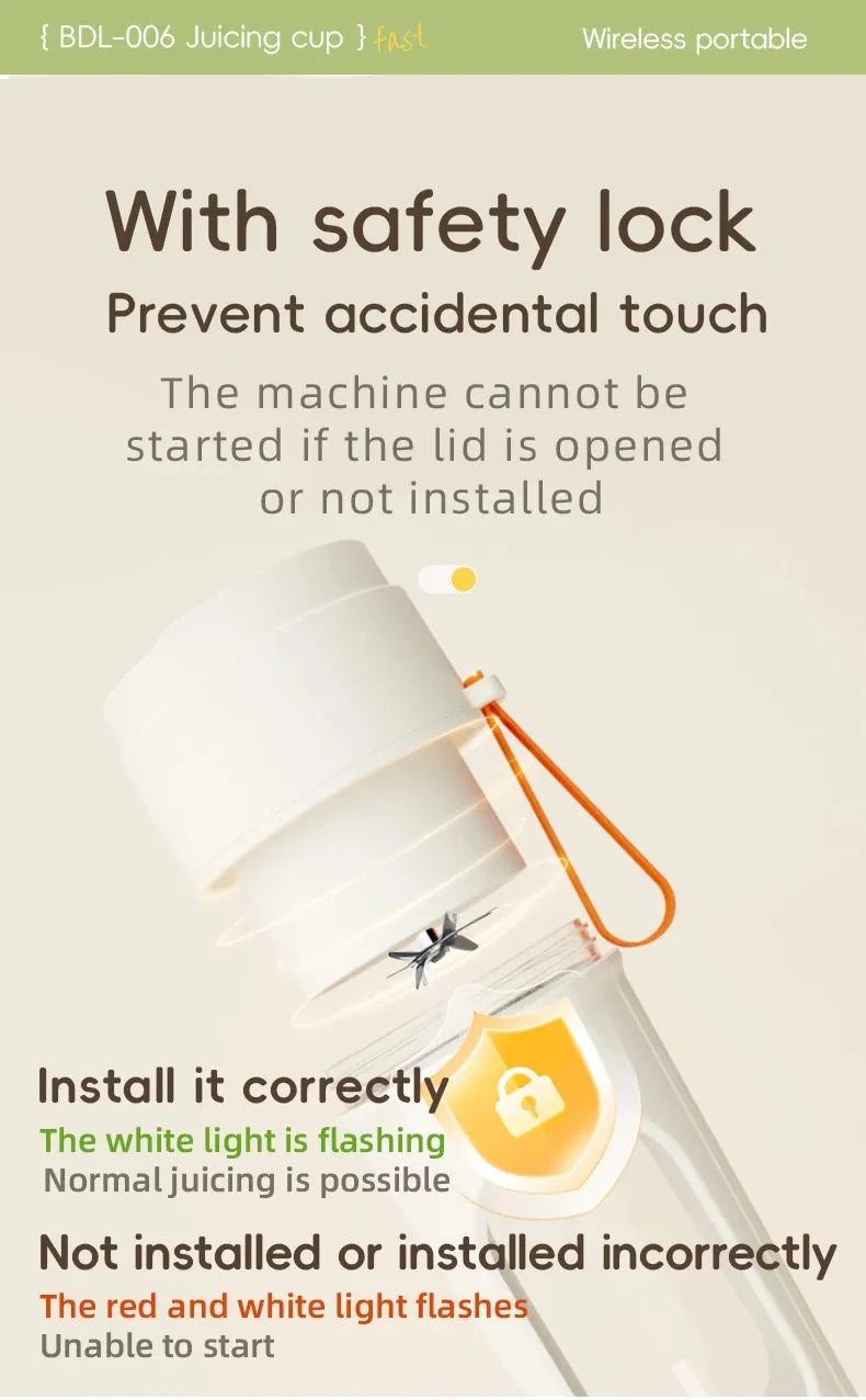Electric portable blender, 12-blade 400ML juicer, fruit blender, USB rechargeable smoothie juicer, milkshake juicer