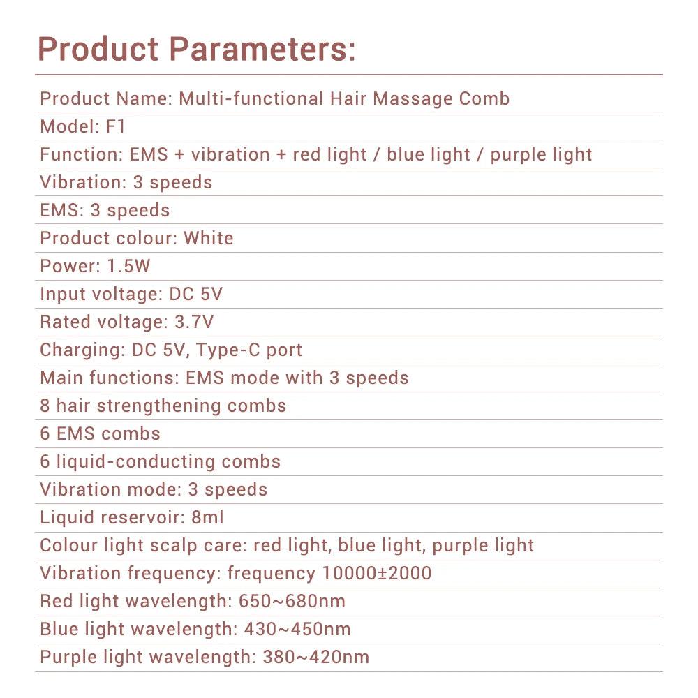 Electric Scalp Massage Comb Red Blue LED Light Therapy EMS Vibration Massage Brush Anti-Hair Loss Medicine Scalp Oil Applicator