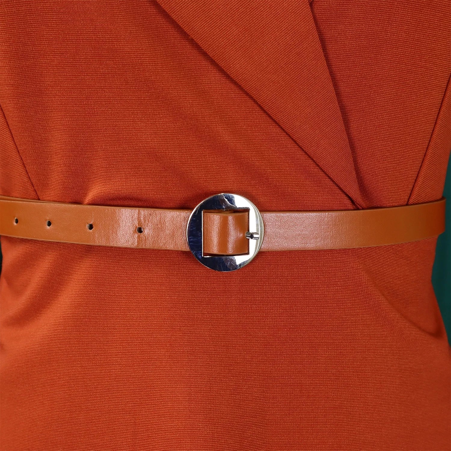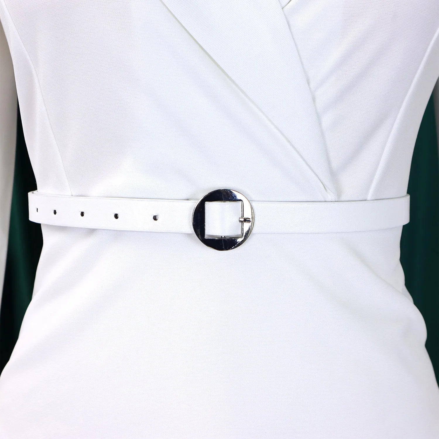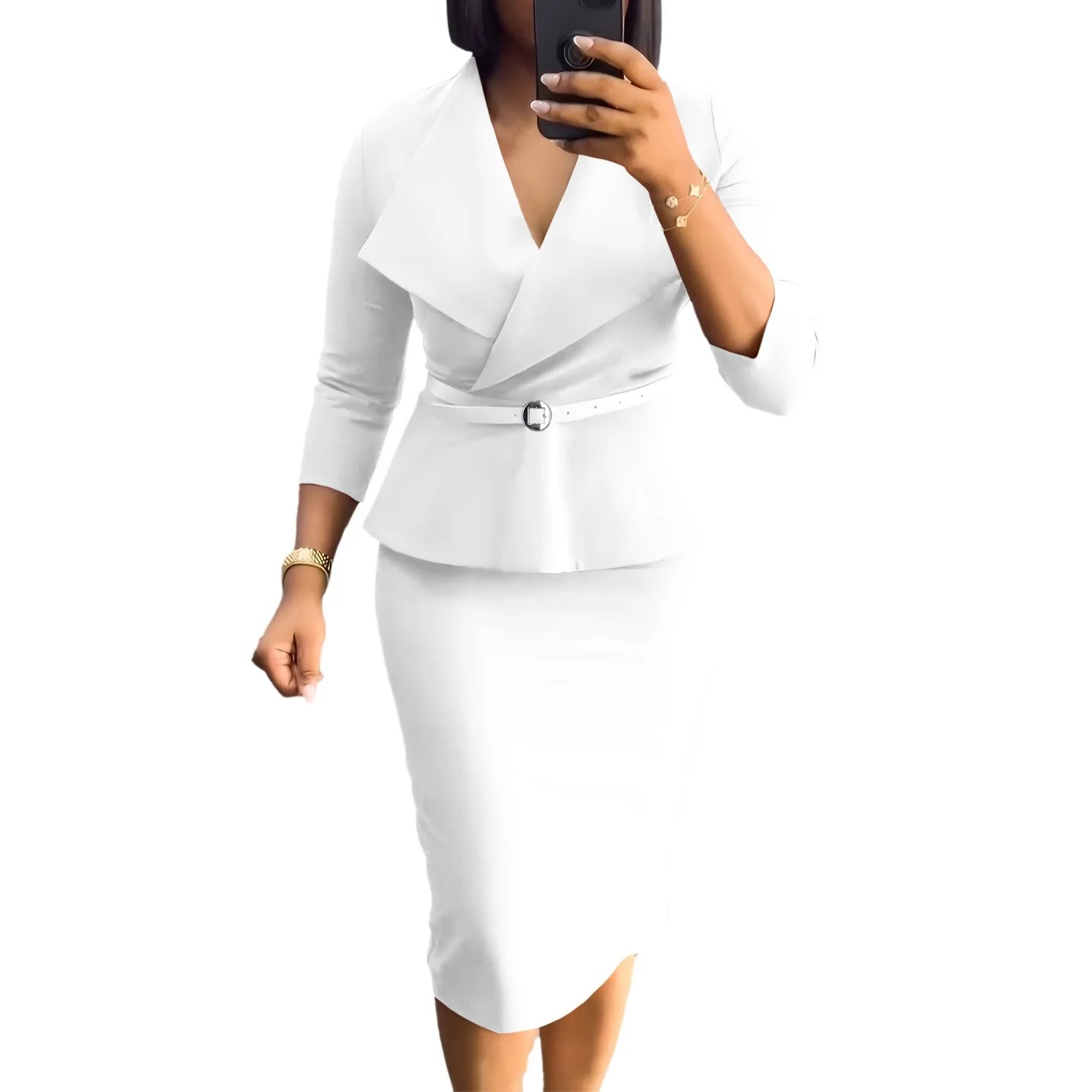 Elegant Office Dresses for Woman V Neck Full Sleeve Belt Waisted Sheath Package Hips Mid Calf Formal Business Work Wear Gowns OL