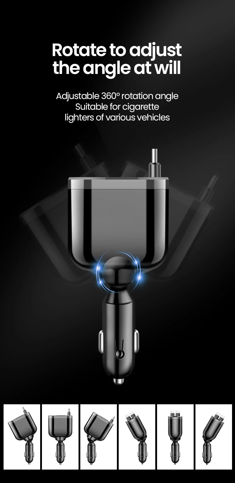 Elough Retractable Car Charger 5 in 1 Fast Charging Car Charger Retractable Cable 2 type c Ports Car Charger Adapter Compatible