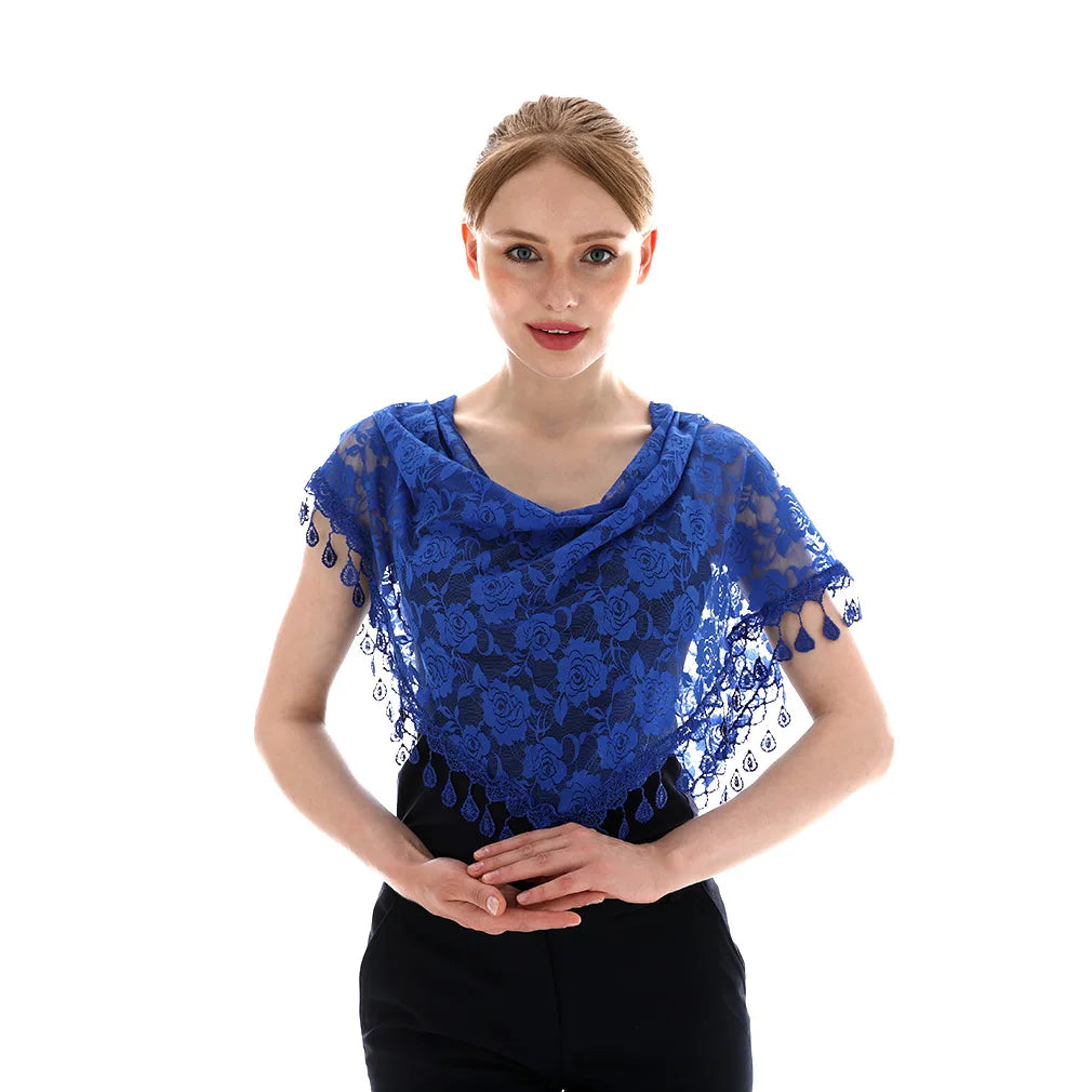 Embroidered Triangle Scarf for Church Shawl Catholic Church Prayer Shawl Sheer Floral Spanish Mantilla Lace Veil Wedding Cape