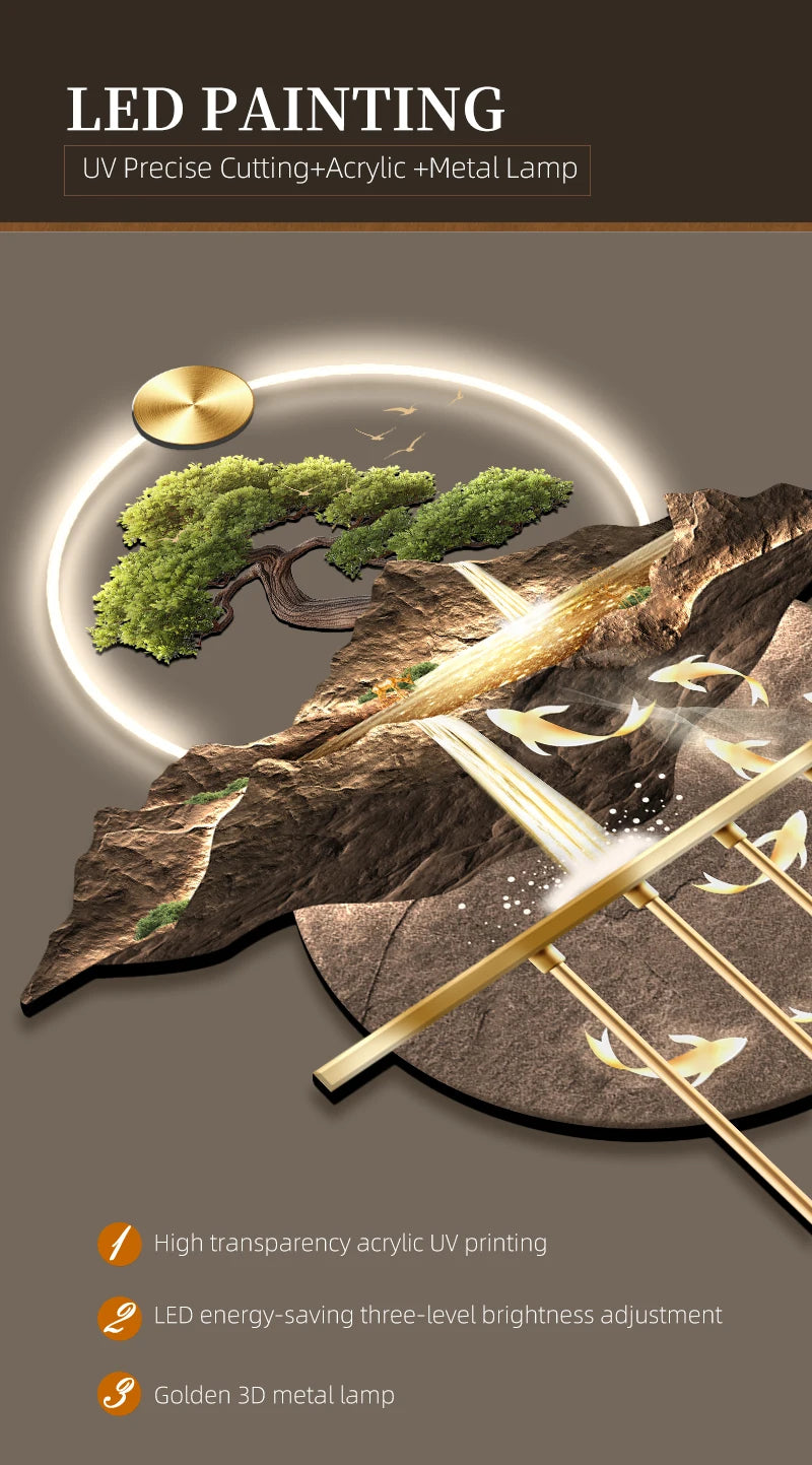 Entrance Decoration Pendant Lamps Luxury Abstract Plant Corridor Hanging Painting TV Background Wall Painting With Light Lustre