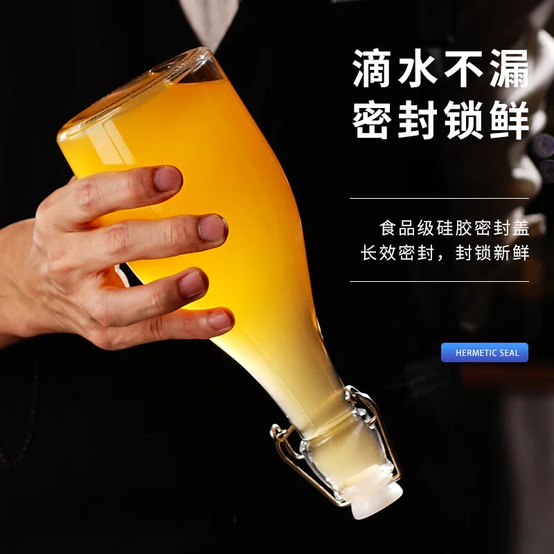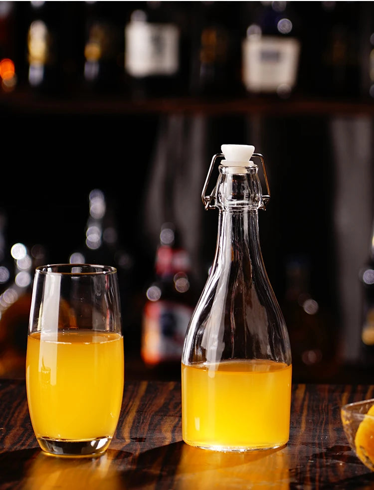 Enzyme Bottle,Bartender Tool,Fresh Lemon Lime Kitchen Oil Bottle,Jars With Lid Seal Buckle Plastic Storage Container Glass