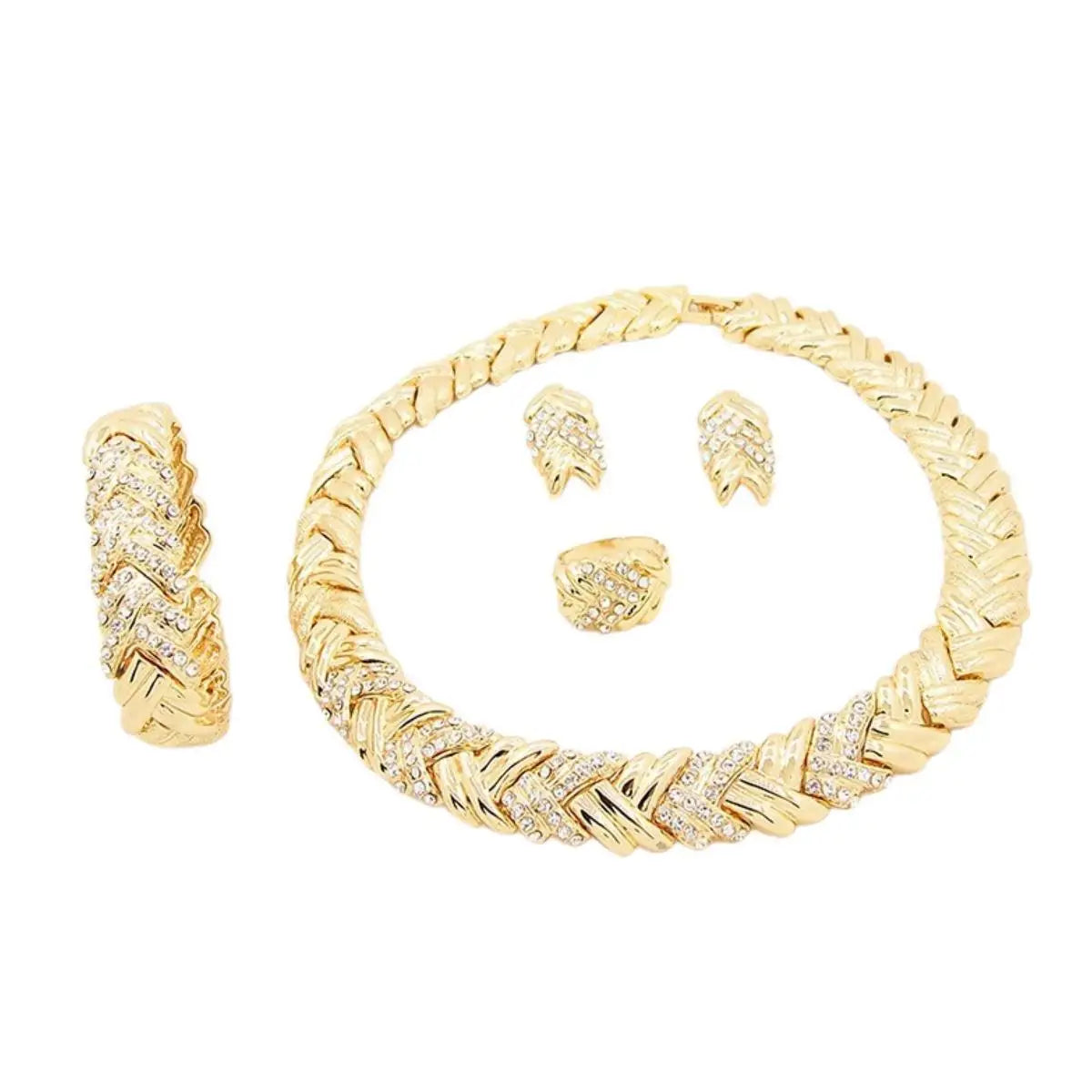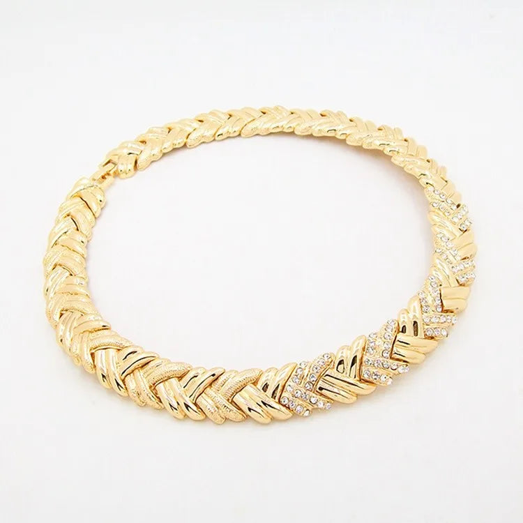 ewelry for Women Fashion Crystal Jewelry Set 18k Gold Plated Rhinestone Clear Crystal Necklace Earrings Accessories Gifts for Pr