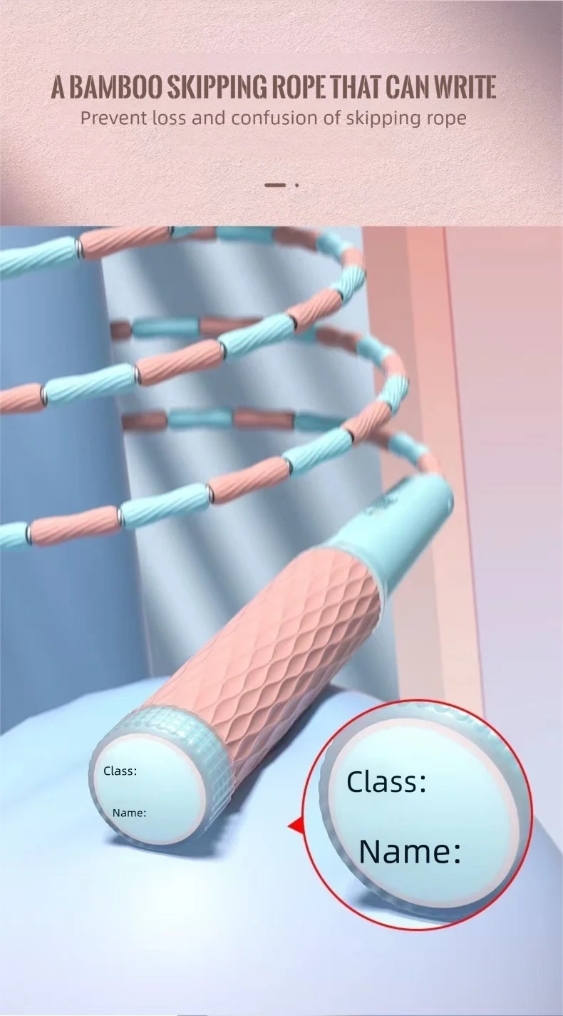 Exam Prep Student Jump Rope – Bamboo Soft Beads Anti-Tangle Design, Ergonomic No-Knot Rope for School Entrance Tests