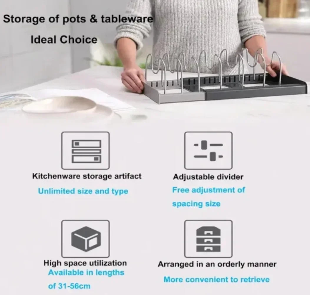 Expandable Pot and Pan Organizers Rack Holder Kitchen Cabinet Pantry Bakeware Organizer Rack with 6 Adjustable Compartments