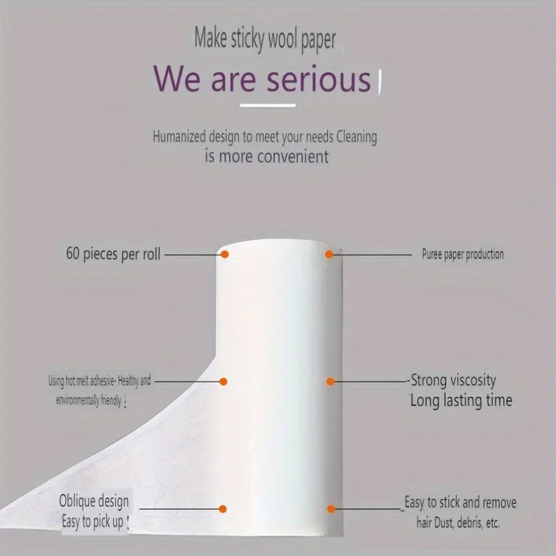 Extra-Sticky Lint Roller for Pet Hair Removal 60 Sheets/Roll,Ideal for Dog & Cat Owners,Perfect for Clothes & Furniture Cleaning