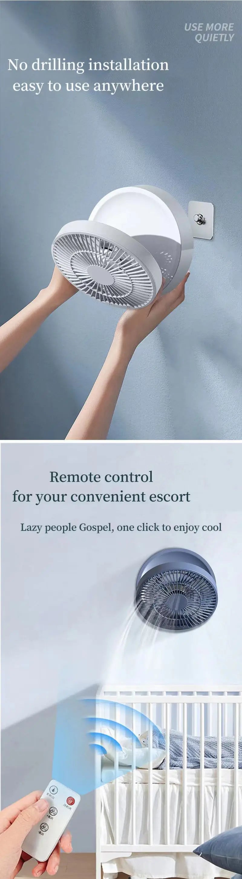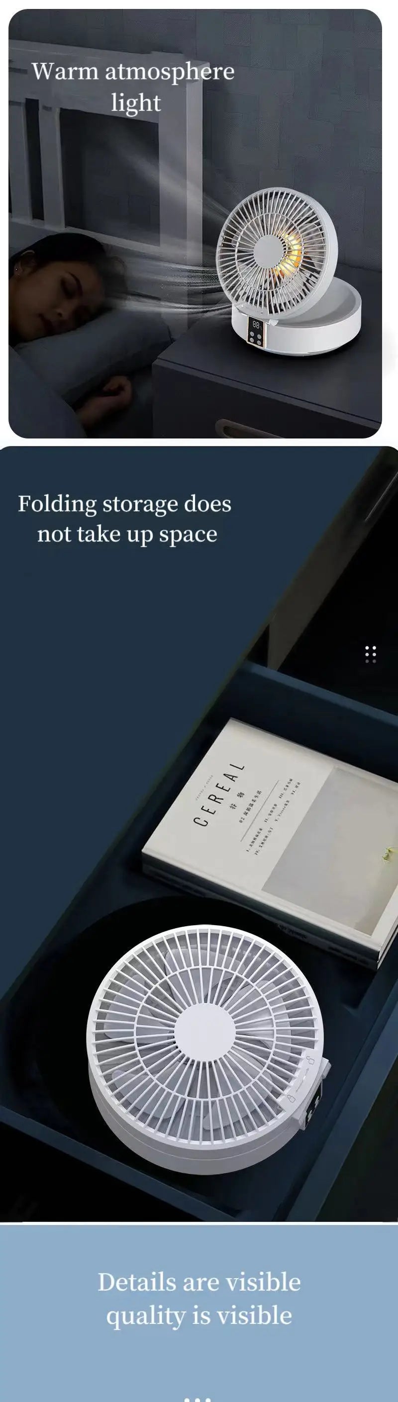 Fan With Remote Control Portable Wall-Hanging Rechargeable Usb Electric Folding Fan Nightlight Air Cooler Household