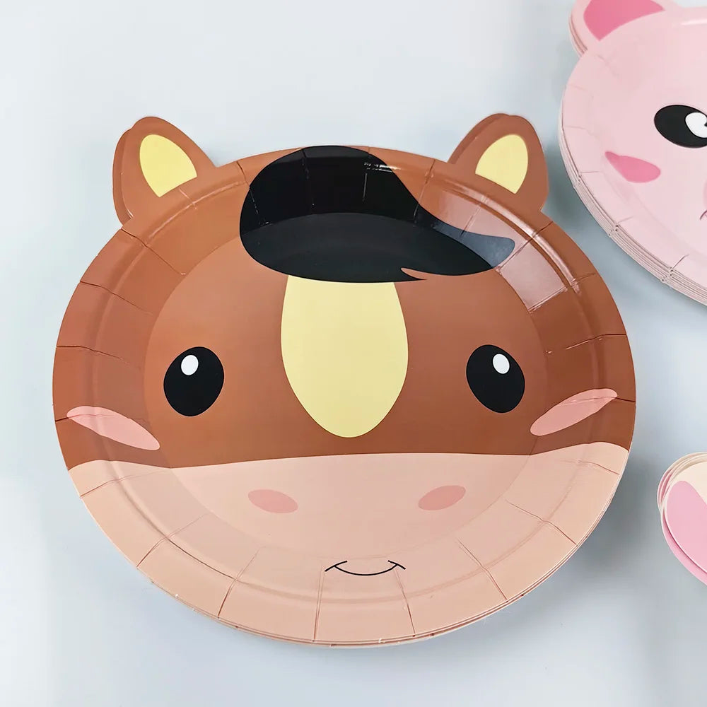 Farm Birthday Party Supplies Animal Farm Paper Plate Pig Sheep Chicken Horses Cows Shape Dinnerware Farm Animal Party Decoration