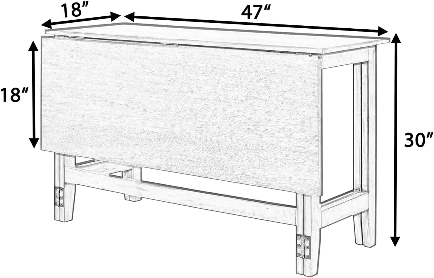 Farmhouse Drop Leaf Folding Dining Table, Space Saving Flip Top Dining Kitchen Table for 4, Solid Wood Extendable Dining Room