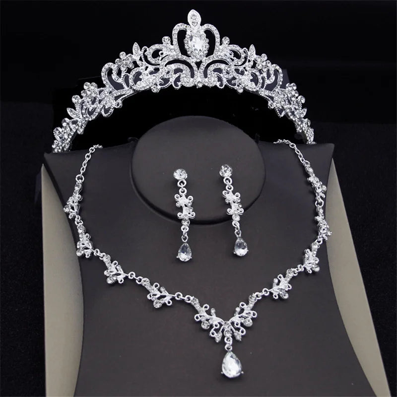 Fashion Crystal Bridal Jewelry Sets for Women Tiaras Earrings Necklace Crown Wedding Dress Bride Jewelry Set Accessories