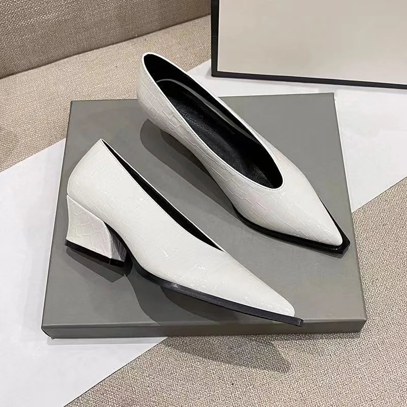 Fashionable Crocodile Leather Office Shoes 2024 Women's Simple Patent Leather Shallow High Heels Pointed Toe Women's High Heels