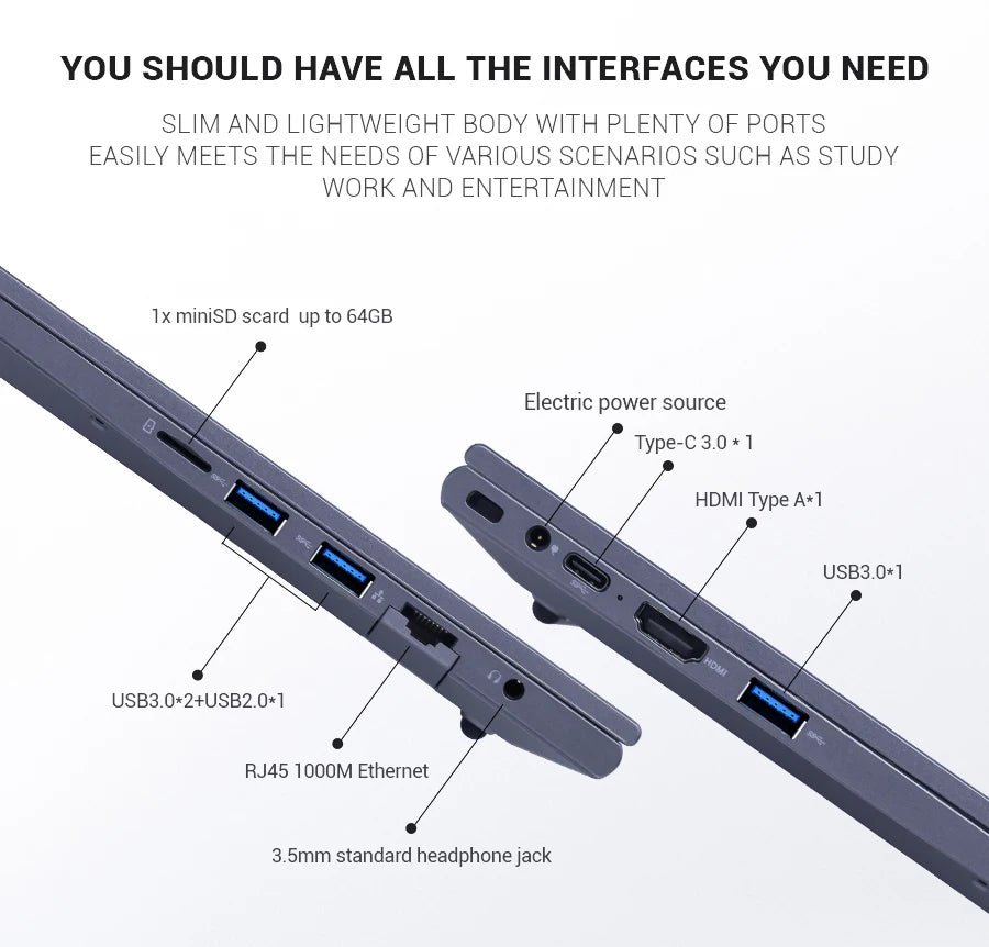 Port: 3.5 mm Audio Jack,1*USB3.1 Type-C,2*USB3.0,1*USB2.0,RJ-45,HDMI-Compatible