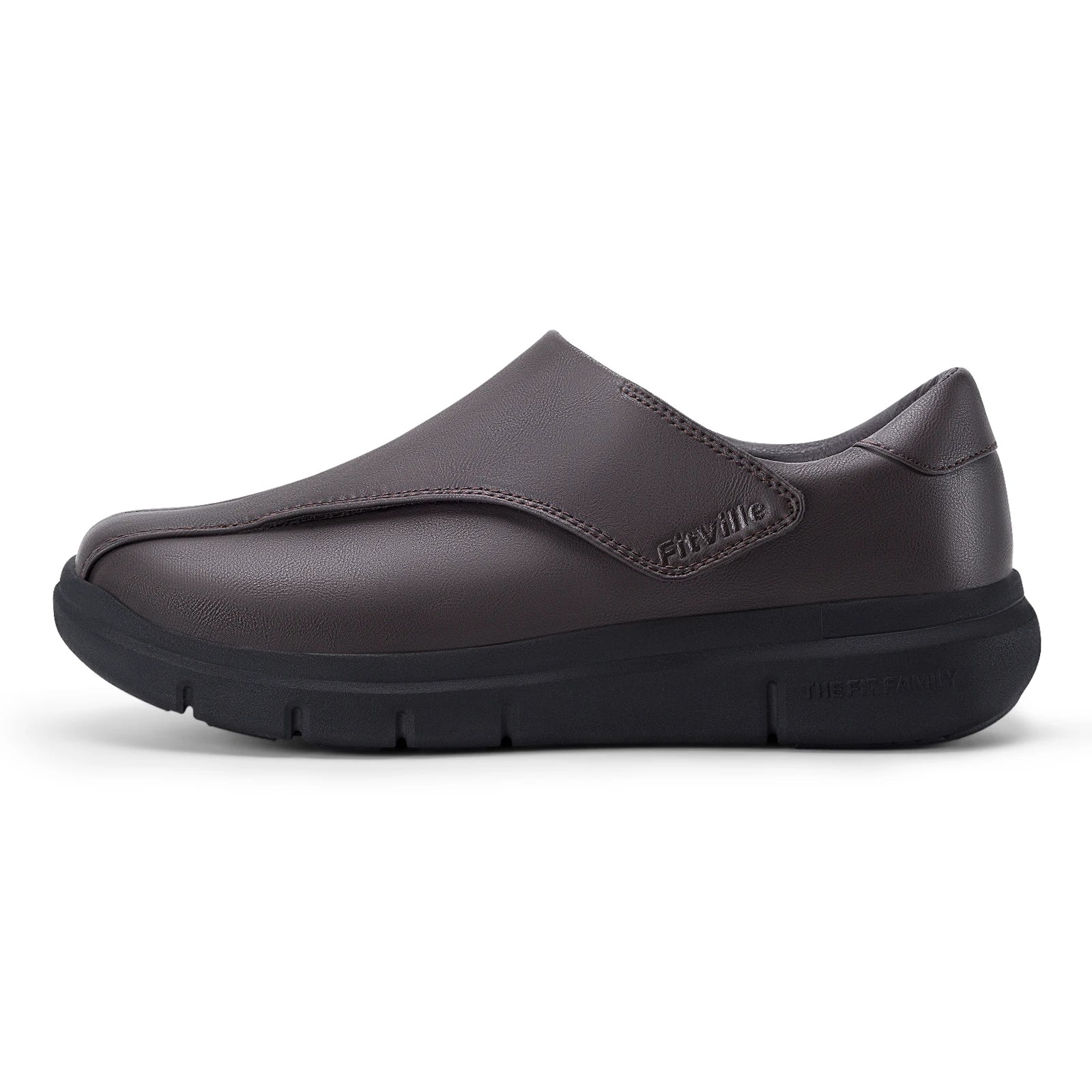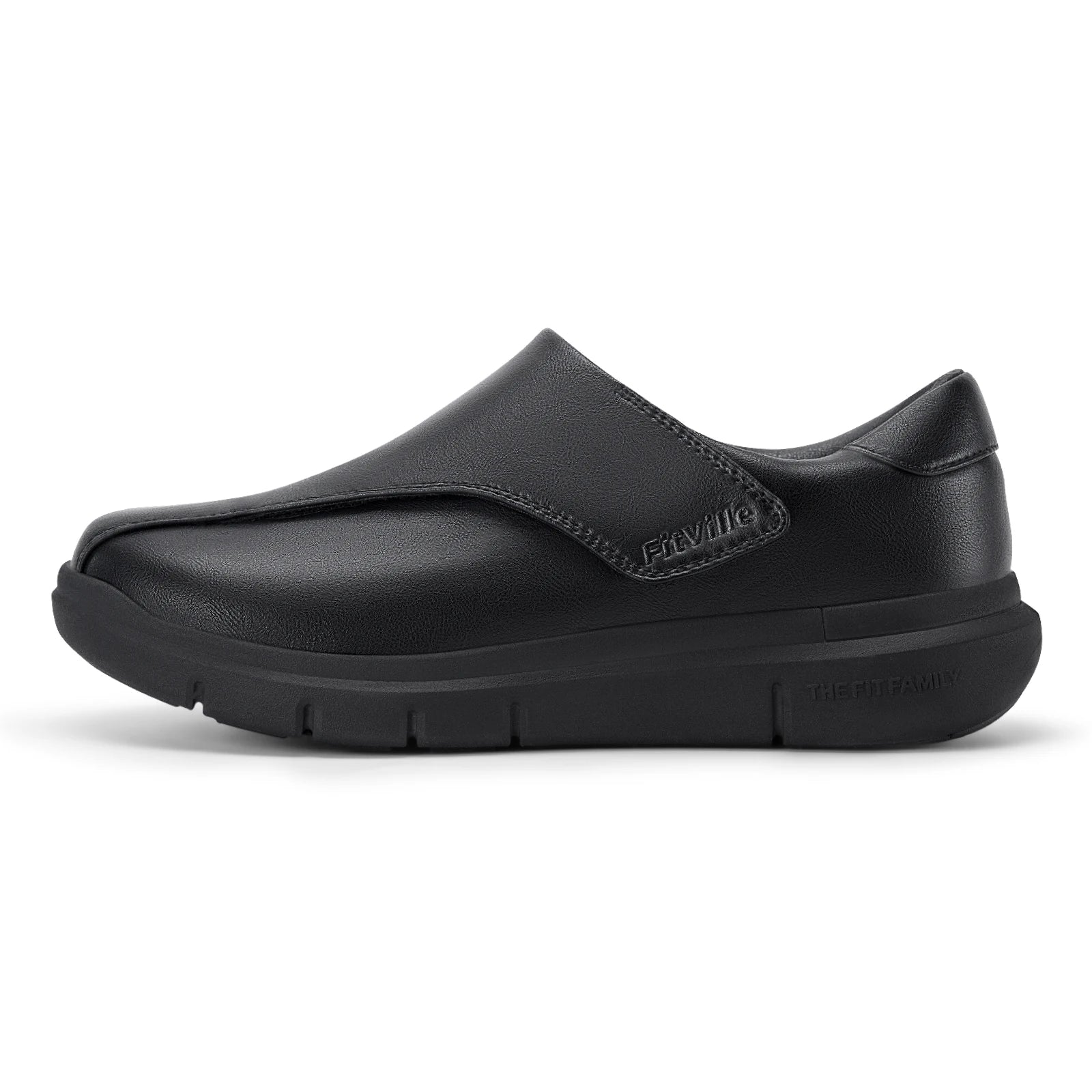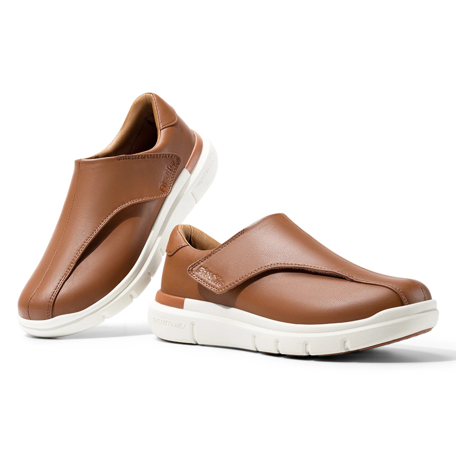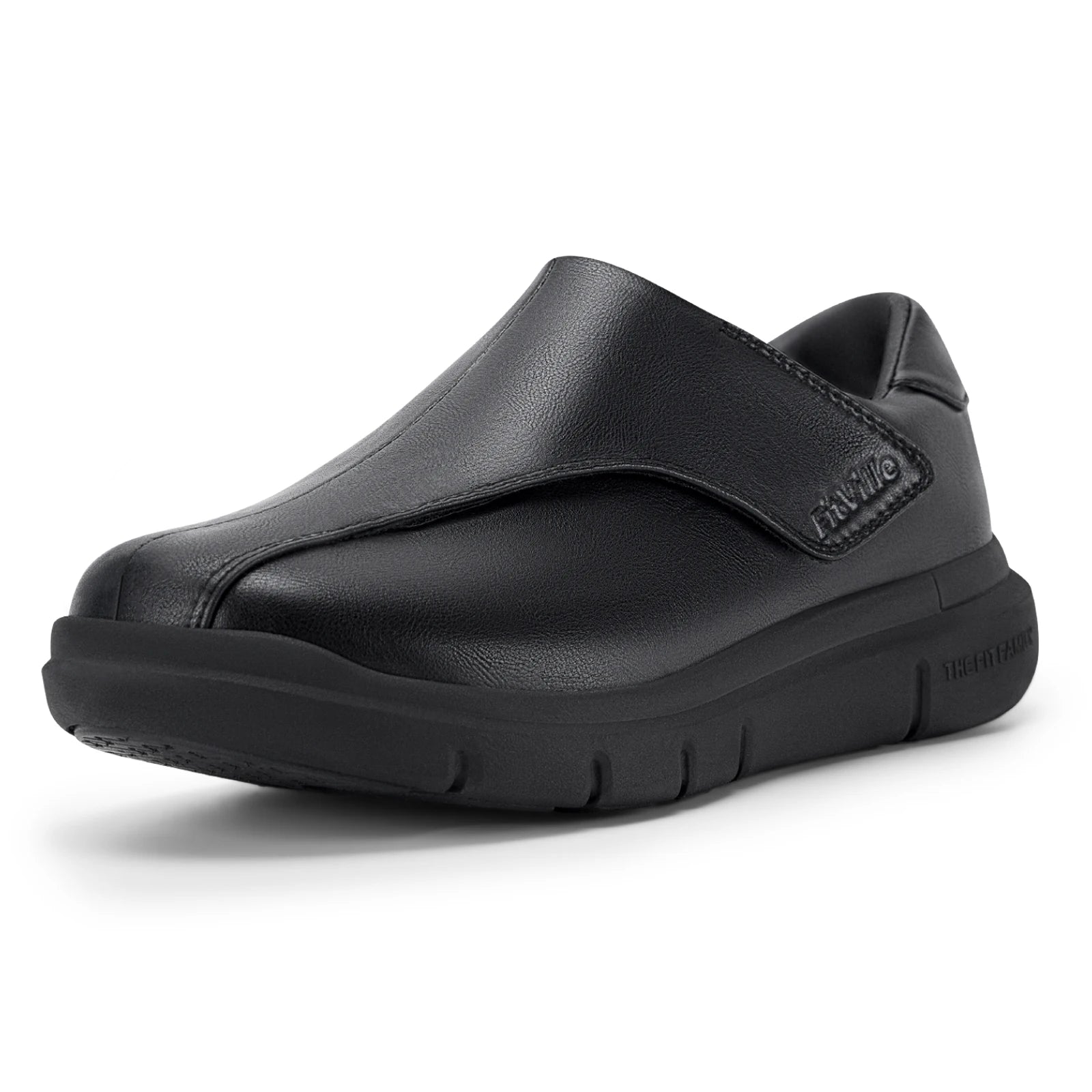 FitVille Men's Leather Shoes Diabetic Shoes Casual Oxford Shoes Adjustable Lightweight Formal Business Shoes for Swollen Feet