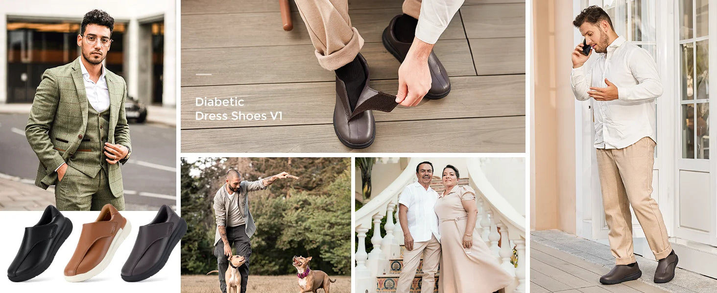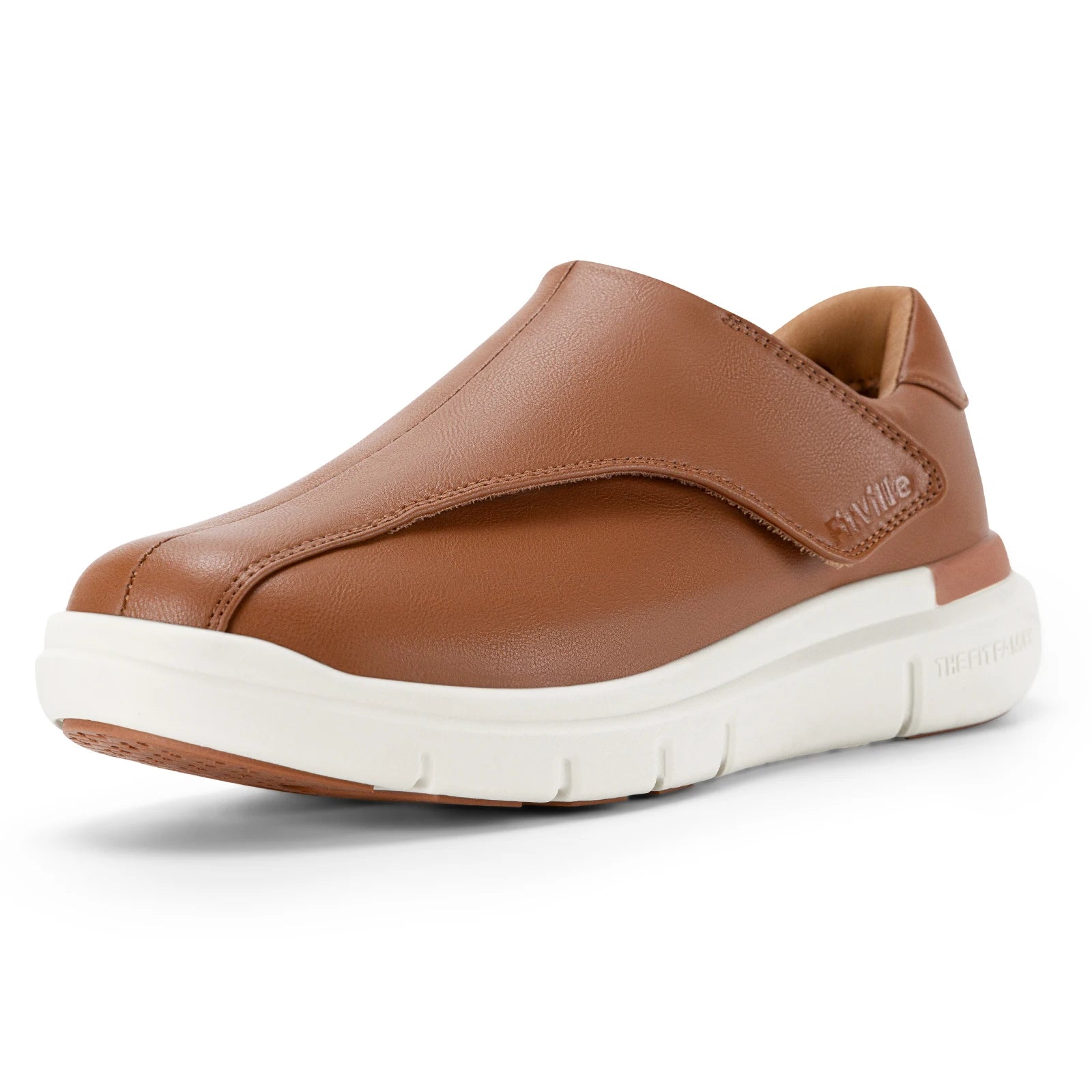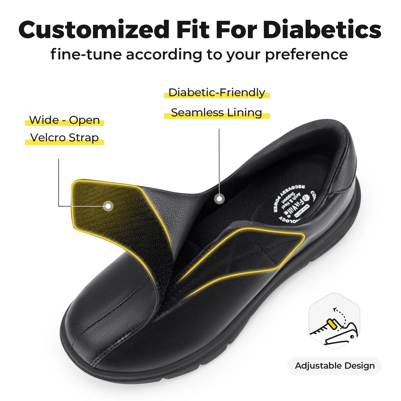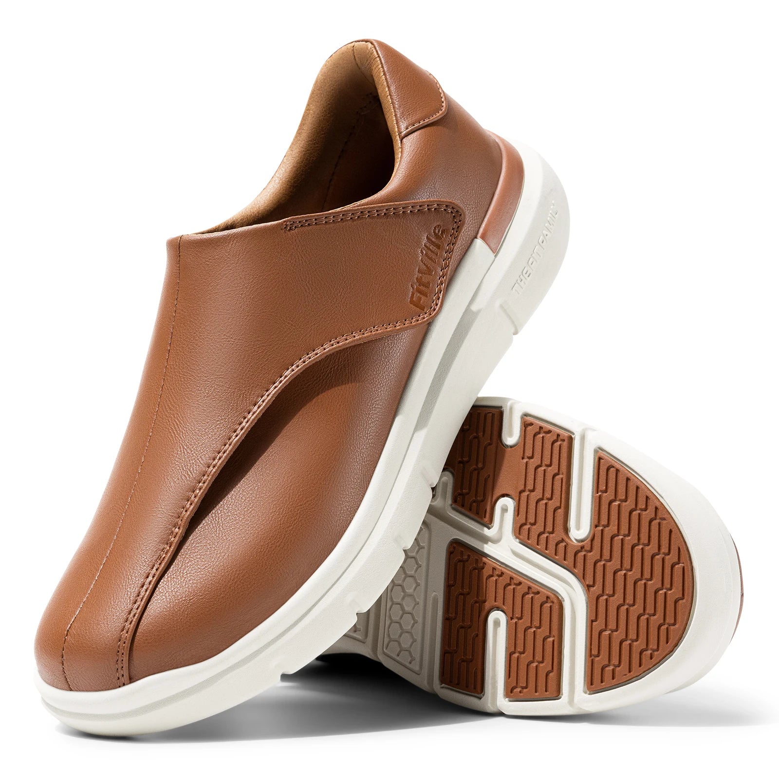 FitVille Men's Leather Shoes Diabetic Shoes Casual Oxford Shoes Adjustable Lightweight Formal Business Shoes for Swollen Feet
