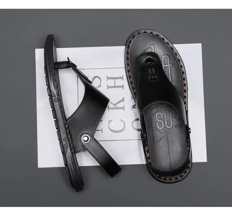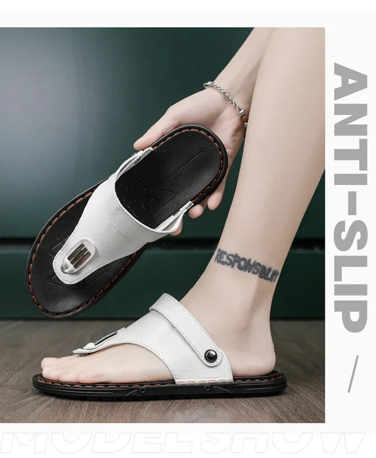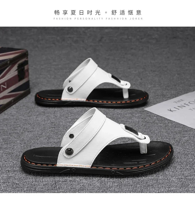 Flip Flops Flat Mens Sandals Summer Shoes Men Slippers Leather Mens Holiday Non-slip Flip Flops Huaraches Para Caballero