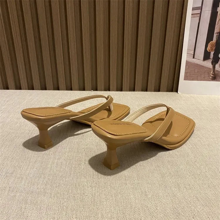 Flip Flops Women Summer Outside New Square Head Slim Heel Sandals Fashion Clip Toe Slippers Women Sandals Pantuflas De Mujer