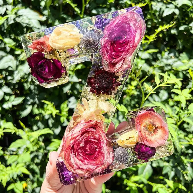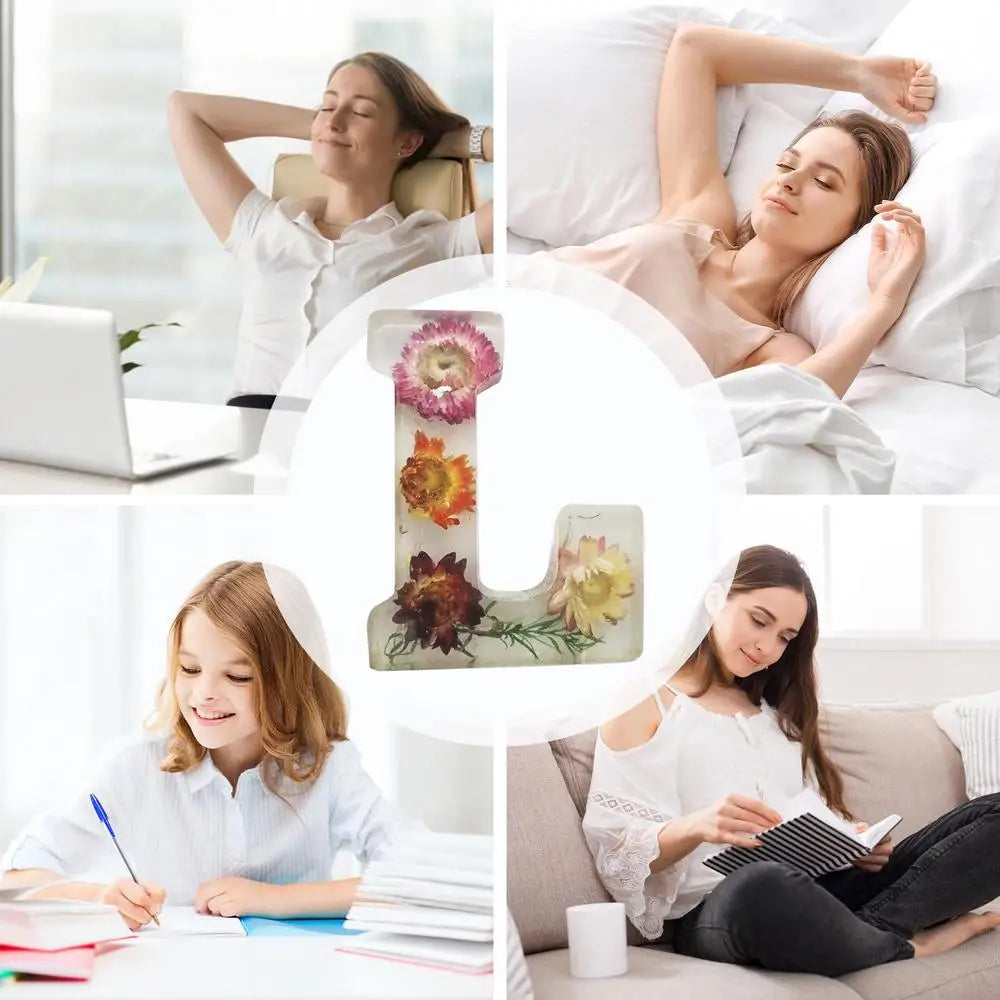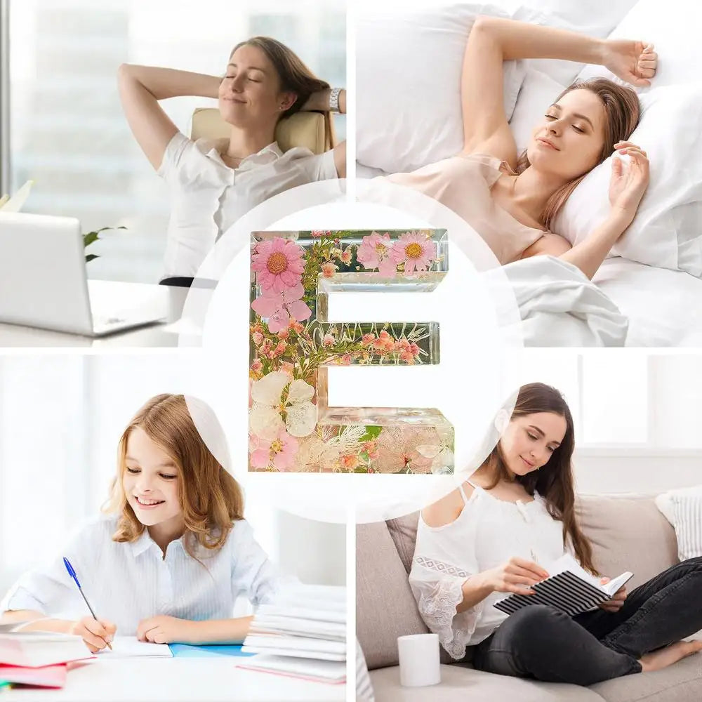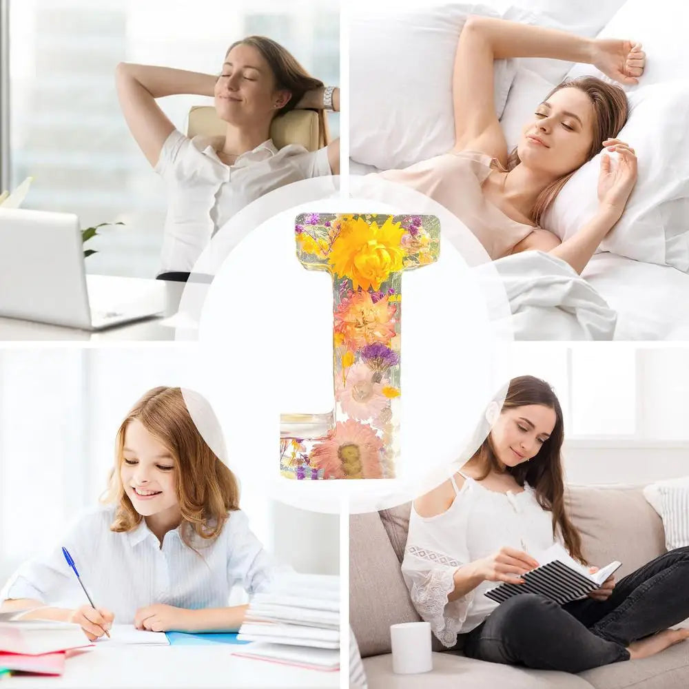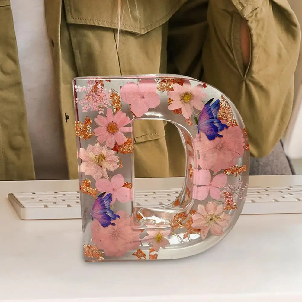 Floral 26 Letters Night Lights Decorative Resin Lamp with Initial Letter & Dry Flower Creative Table Light Night Lamp Glowing