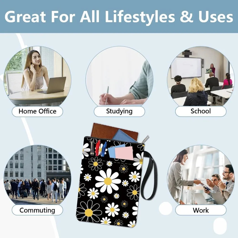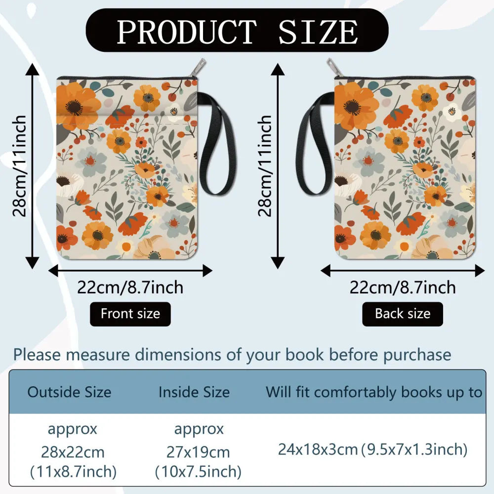 Flower Book Covers Daisy Book Protector Black Vintage Book Sleeve for Paperbacks Washable Fabric Cloth Book Cover with Zipper