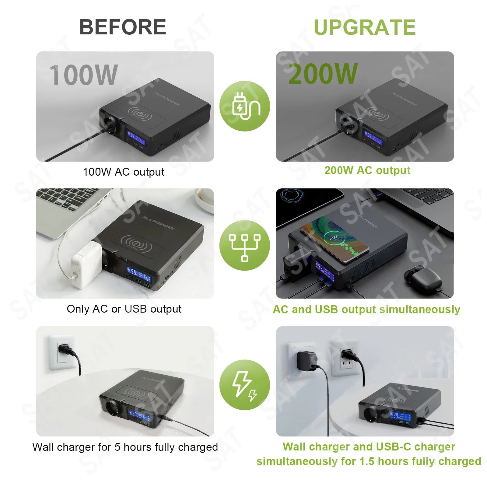 AC Output: 2 X US /JP 110V 200W or EU/UK 220V 200W