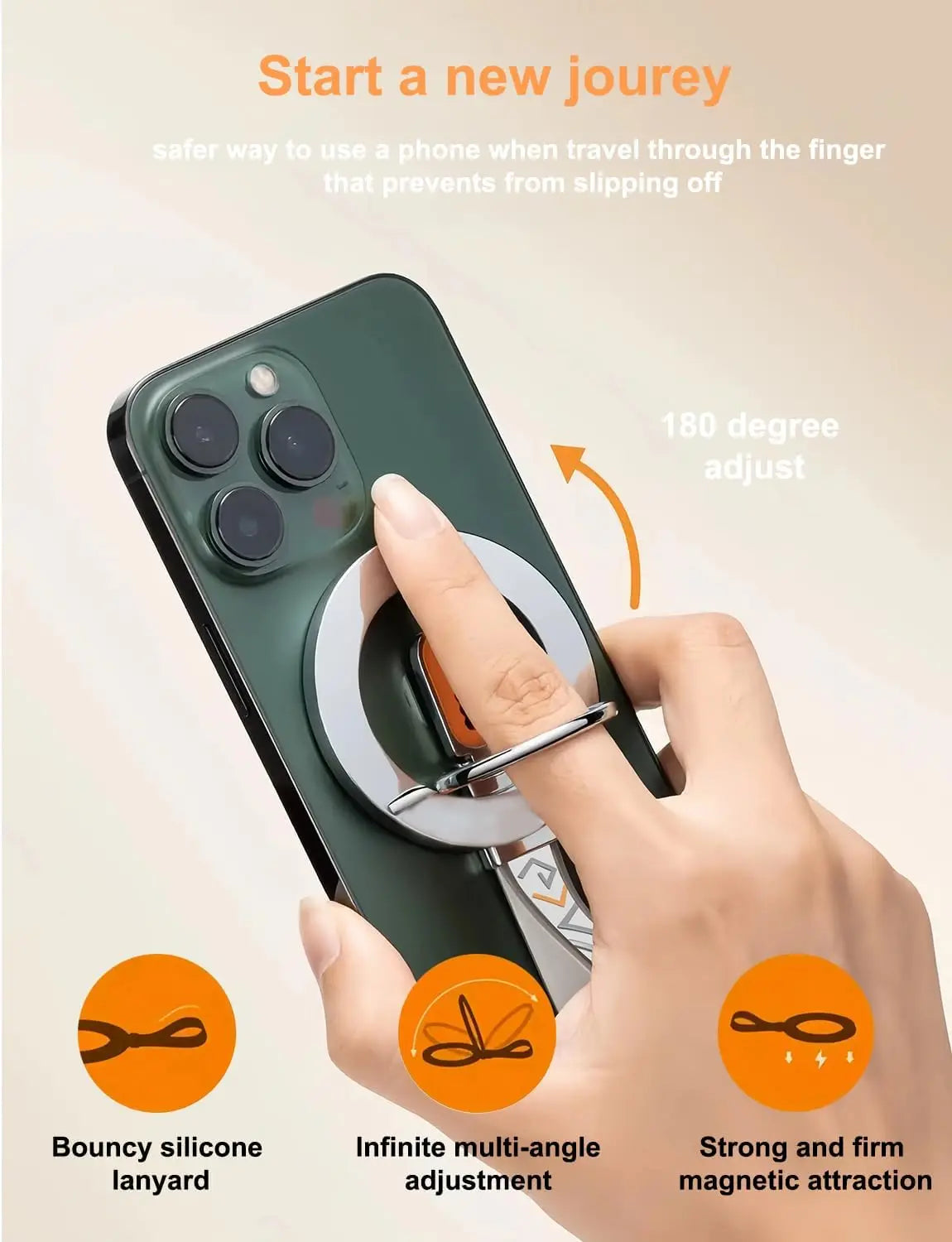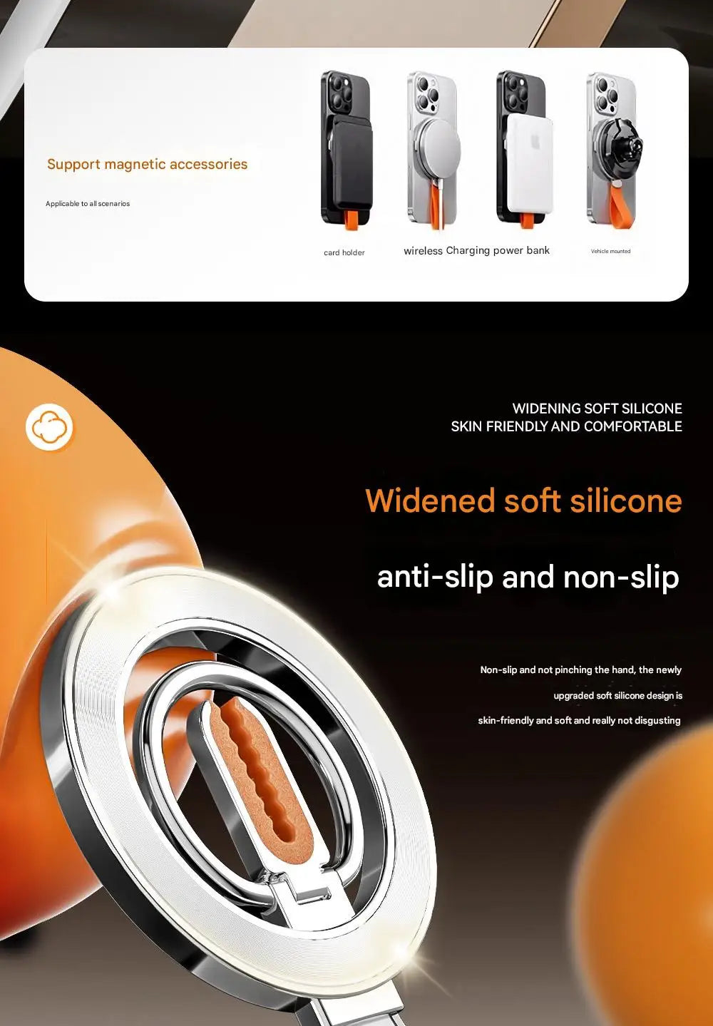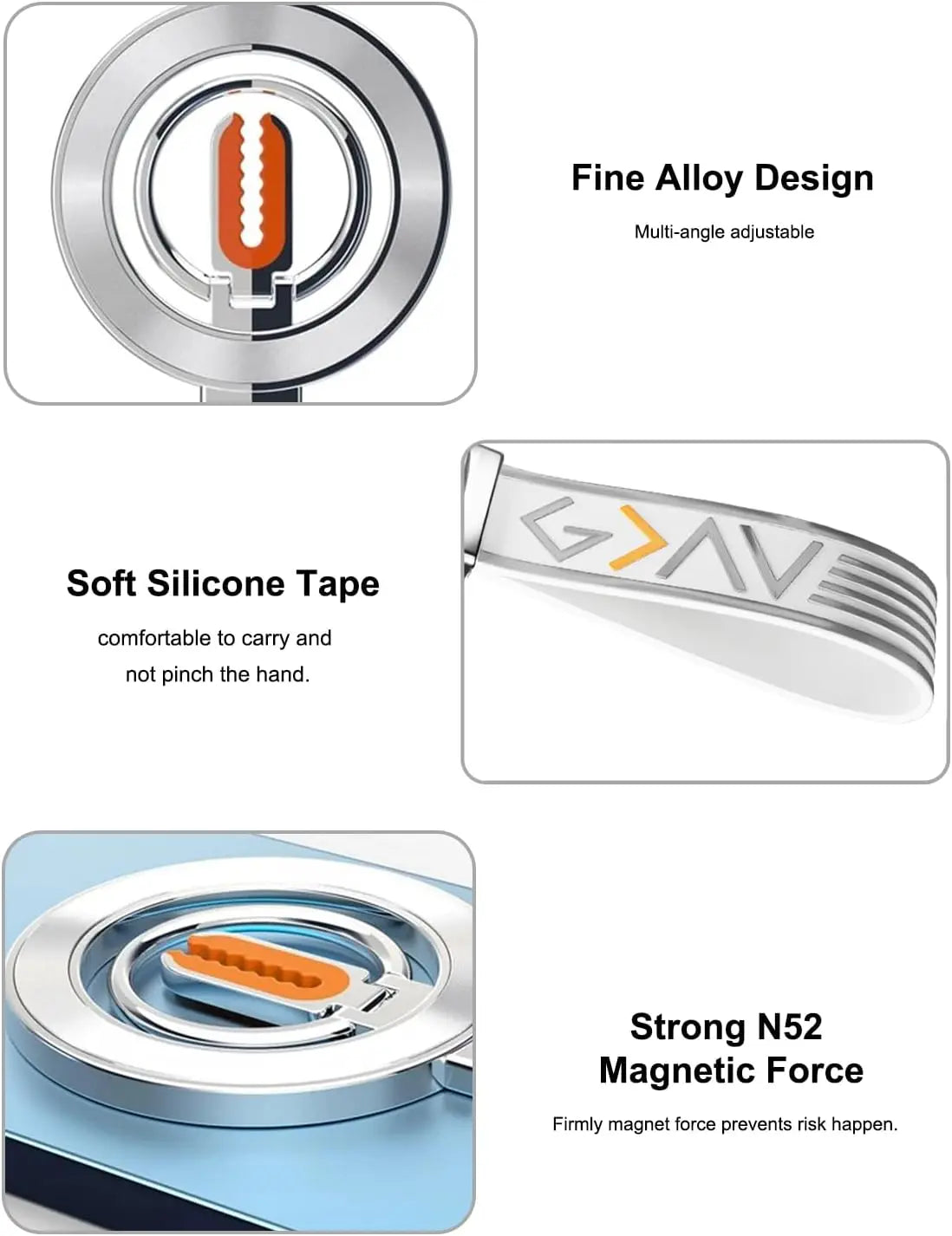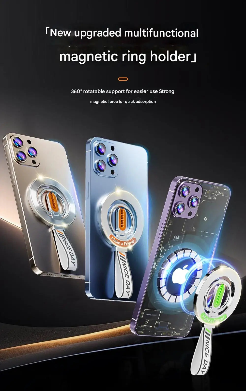 for MagSafe Car Mount, 3-in-1 Upgraded Magnetic Phone Ring Holder Grip Kickstand Car with MagSafe Accessories for IOS & Android