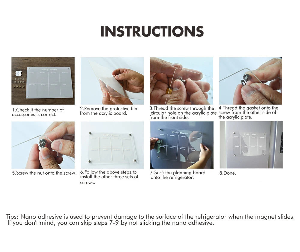 Fridge Magnet Sticker Calendar Weekly Planner Message Boards Reusable Dry Erase Board Schedule Transparent Fridge Message Menu