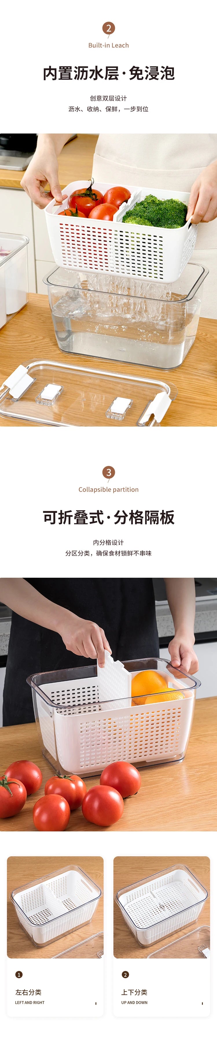 Fridge Storage Box Refrigerator Fresh Vegetable Fruit Boxes Drain Basket Storage Containers With Lid Kitchen Tools Organizer