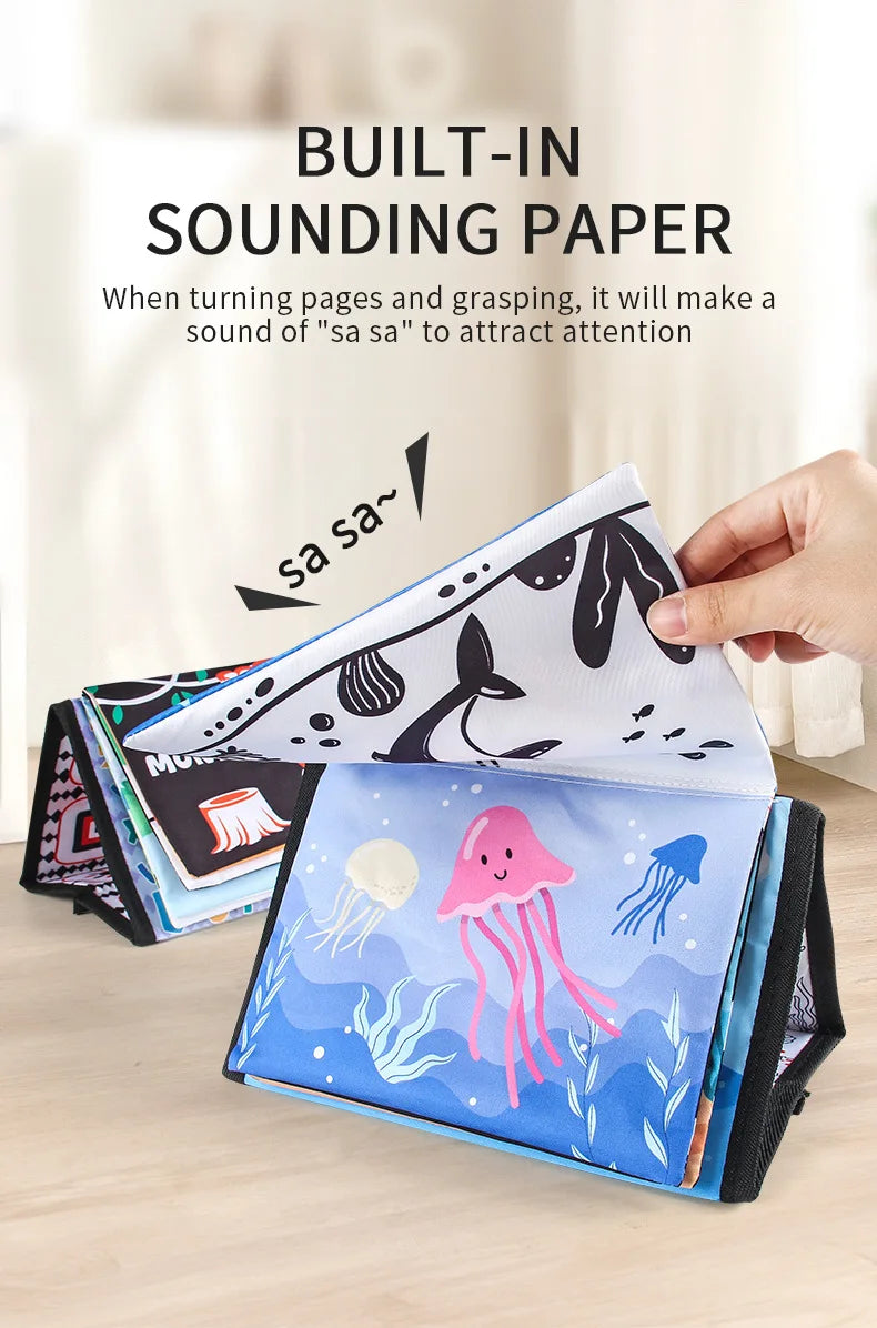 Funny Black and White Baby Cloth Book Early Educational Montessori Toy for Children Newborn Tummy Time Mirror Toys