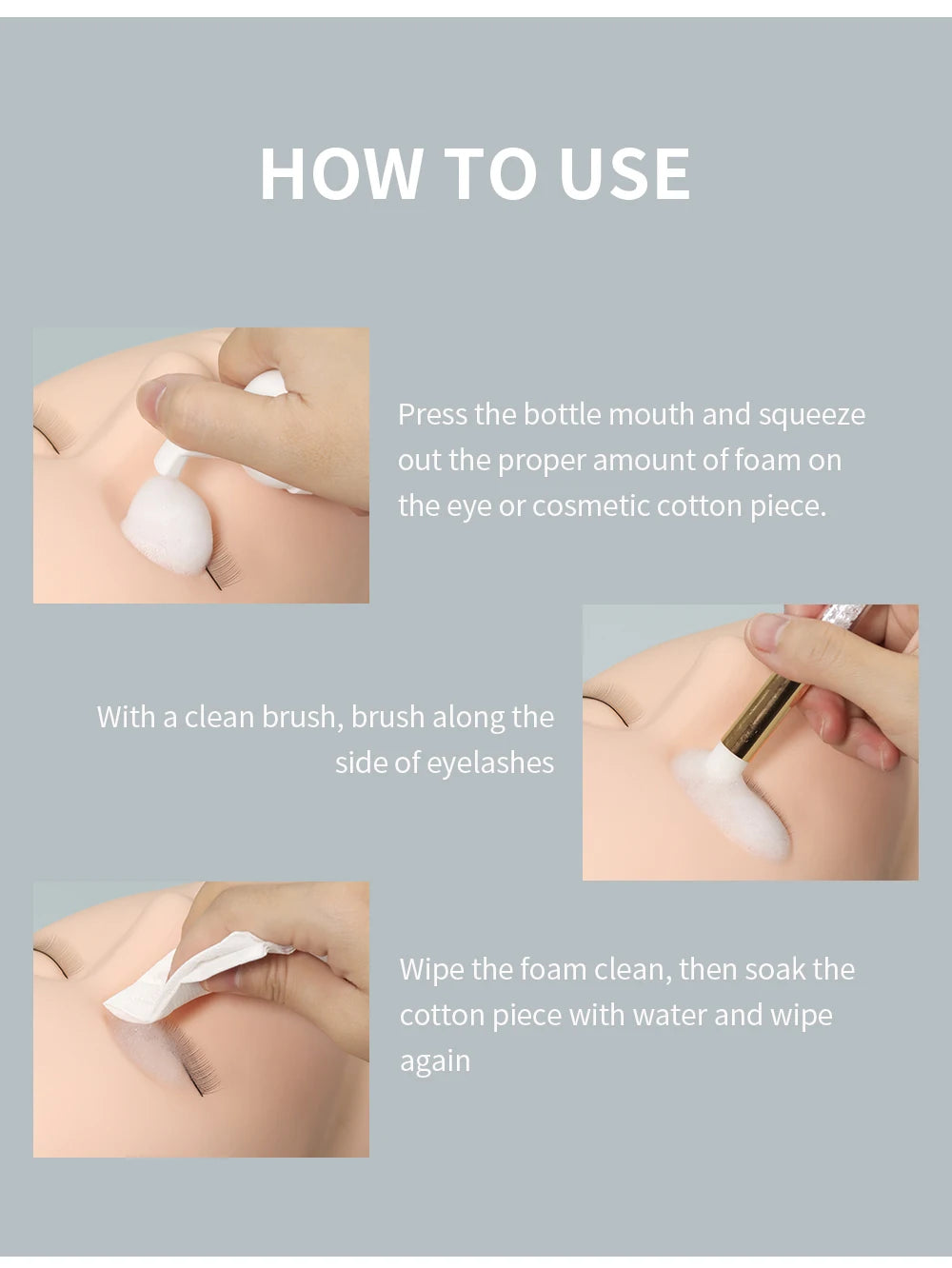 GLAMLASH 60ml No tears Formula Fruit Scent Eyelash Foam Cleanser For Lash Extension Shampoo Pump Press Lash Washing Bottles
