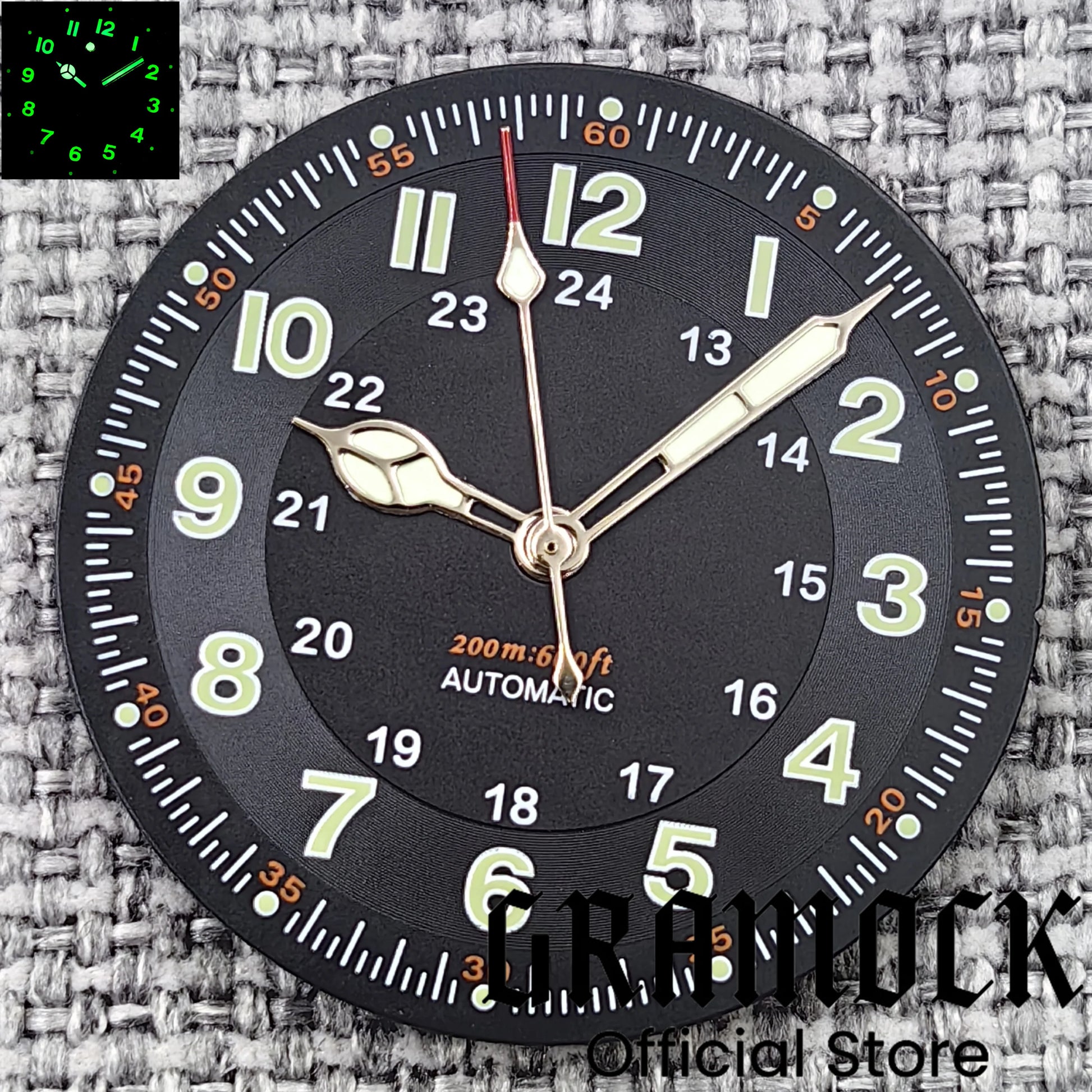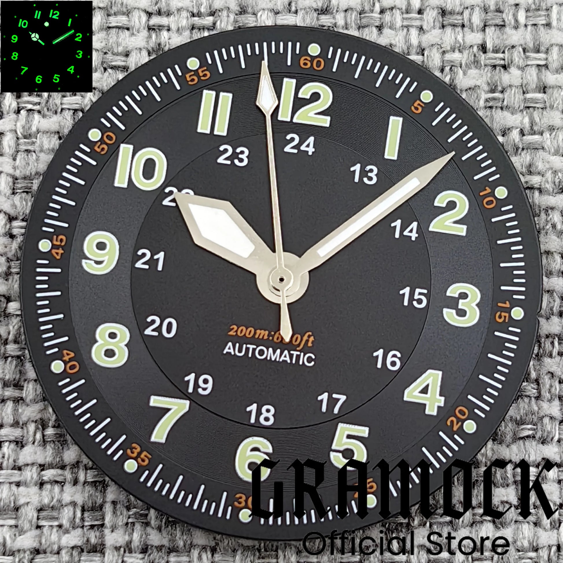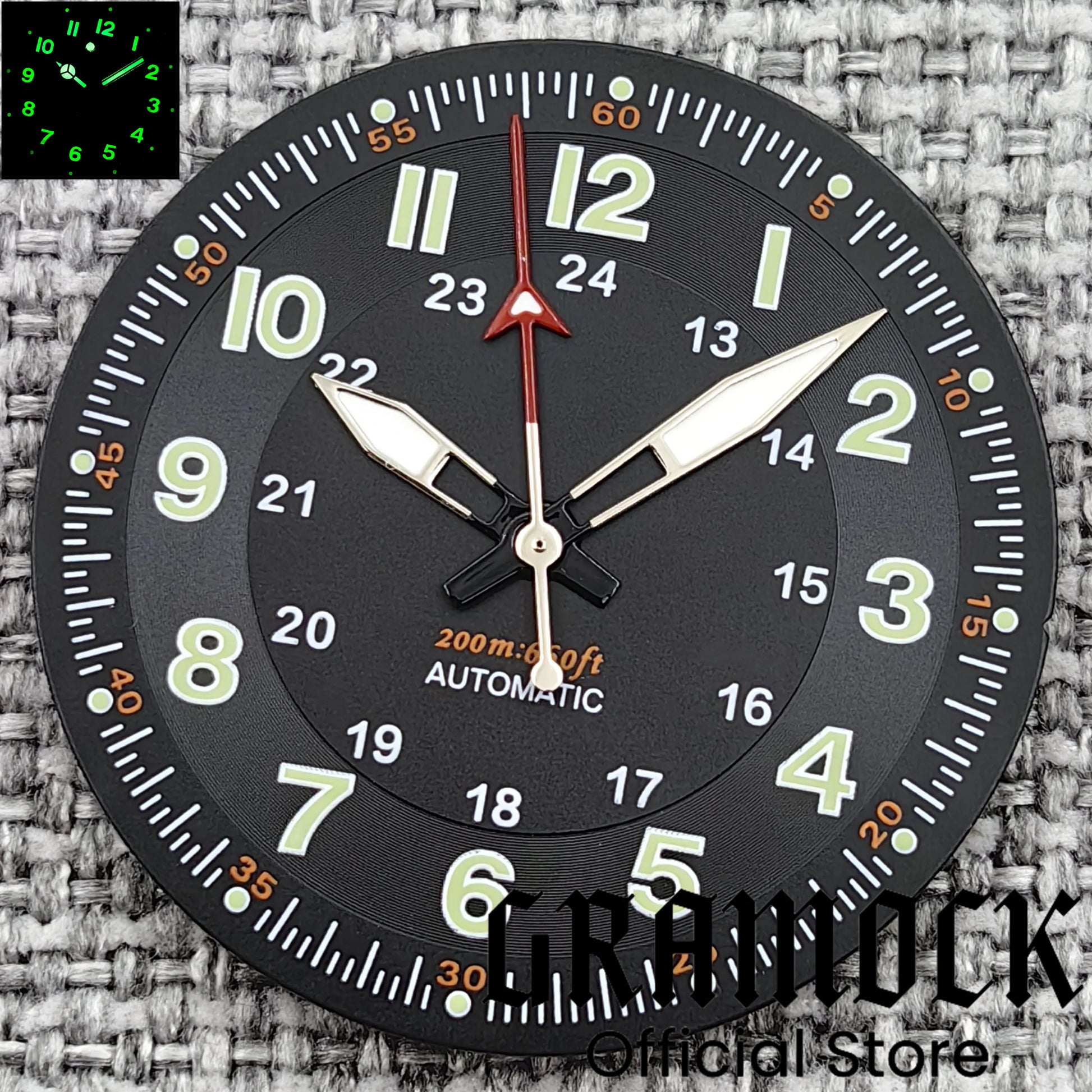 Gramock Classics Sterile 29mm Pilot Black Watch Dial Part for NH35/36 ETA PT5000 Miyota Mingzhu DG ST2130 Movement Part Hand Set