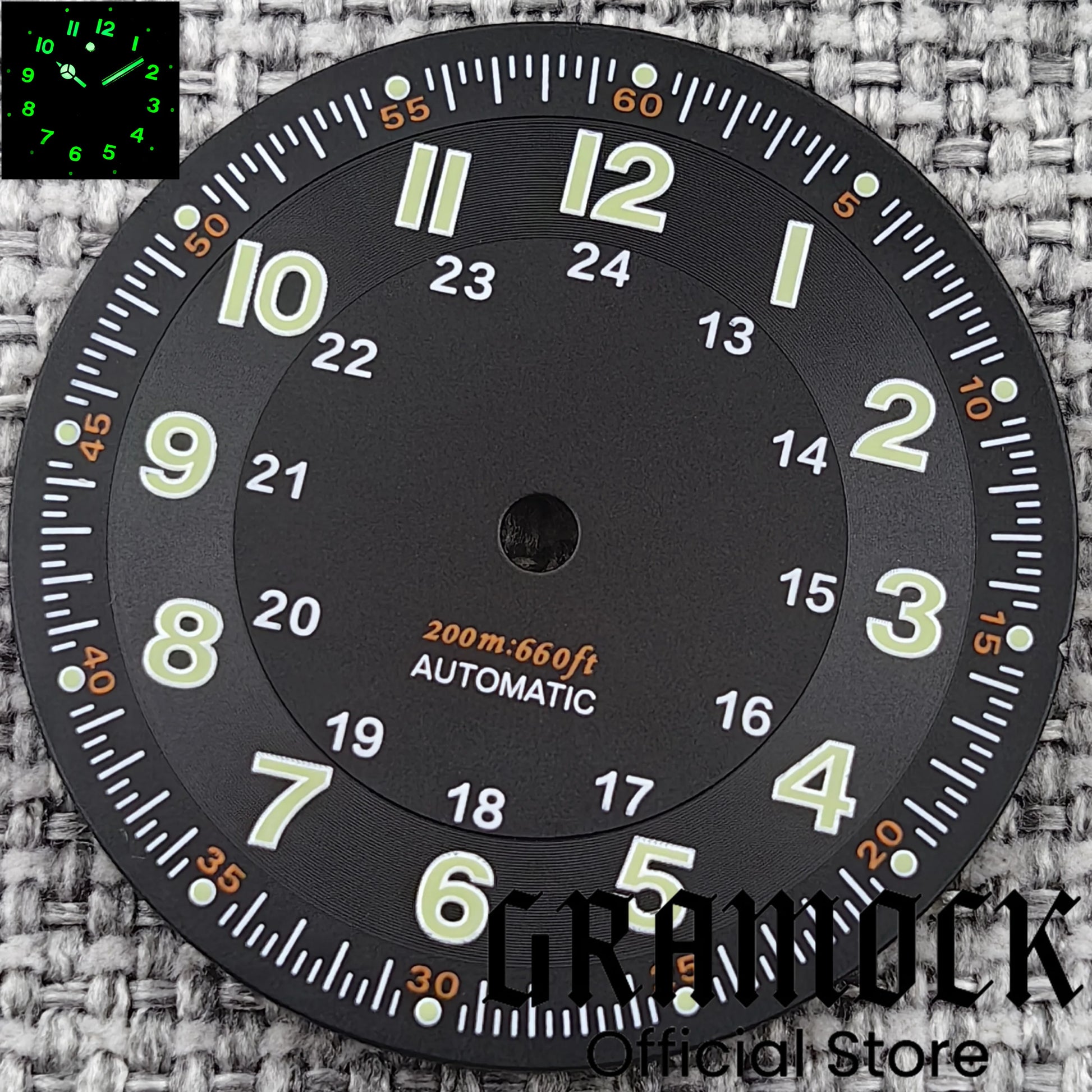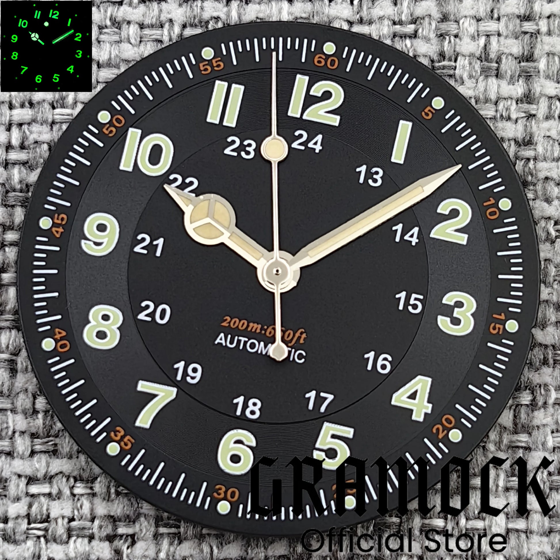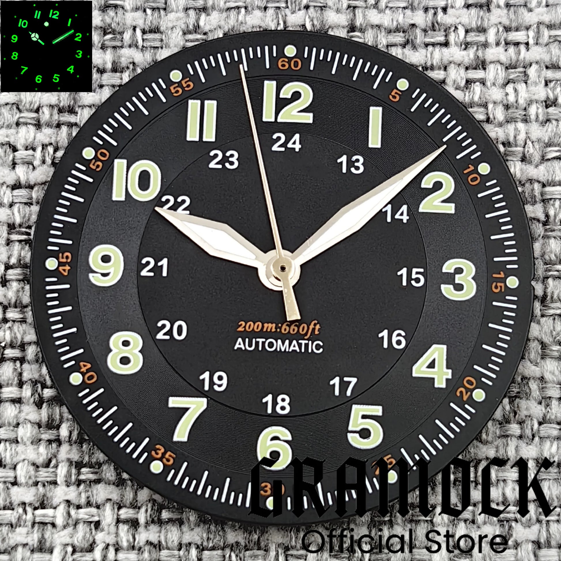 Gramock Classics Sterile 29mm Pilot Black Watch Dial Part for NH35/36 ETA PT5000 Miyota Mingzhu DG ST2130 Movement Part Hand Set
