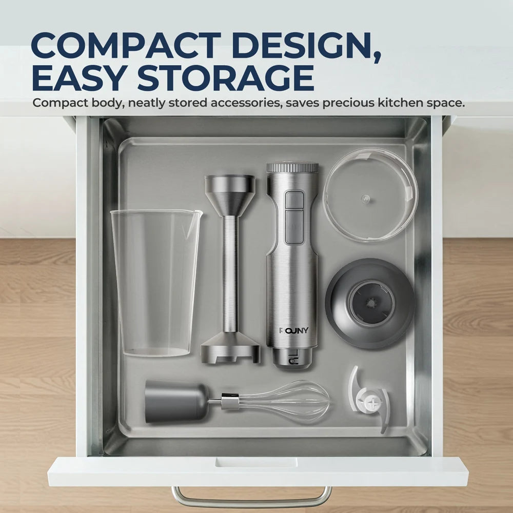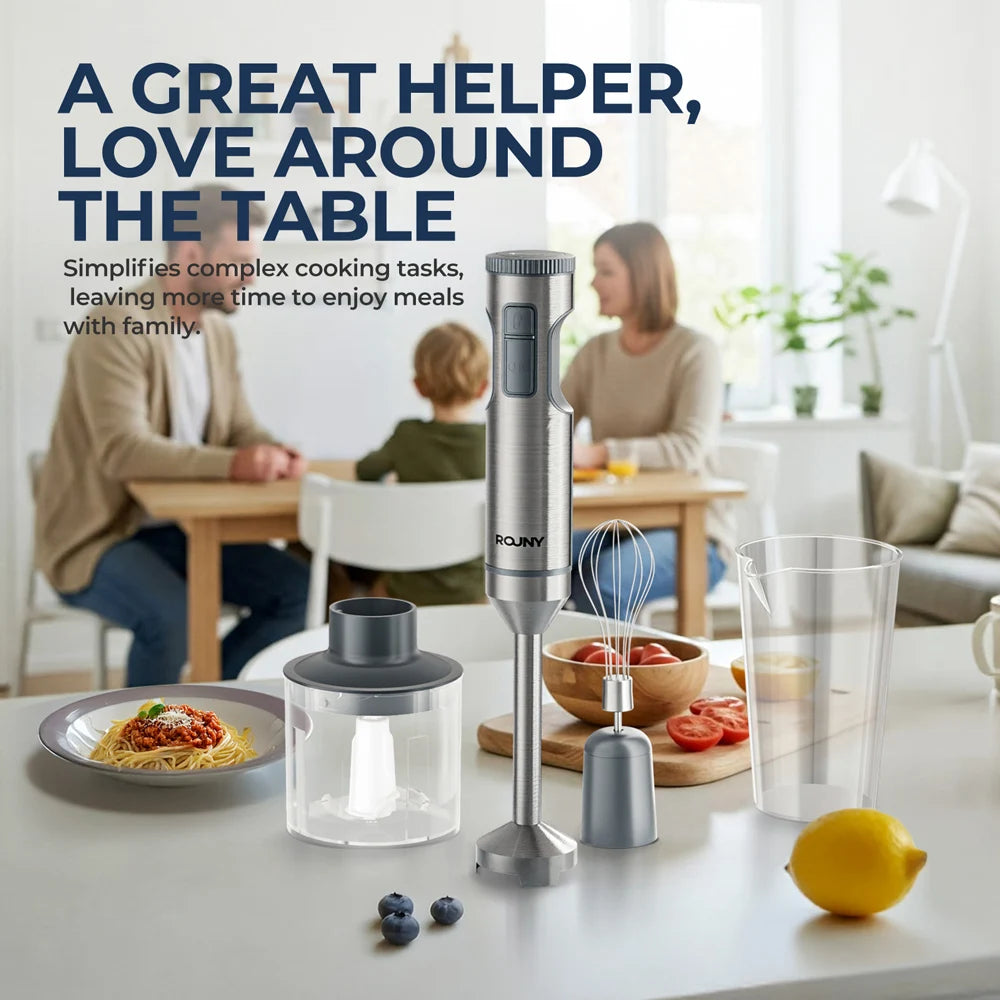Hand Immersion Blender Powerful 4-in-1 Stainless Steel Stick Food Mixer 700ml Mixing Beaker 500ml Processor Whisk