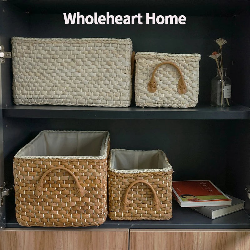 Hand-woven Storage Basket Household Laundry Baskets Outdoor Picnic Boxes Portable Toy Clothes Organizer Bedroom Desktop Decor