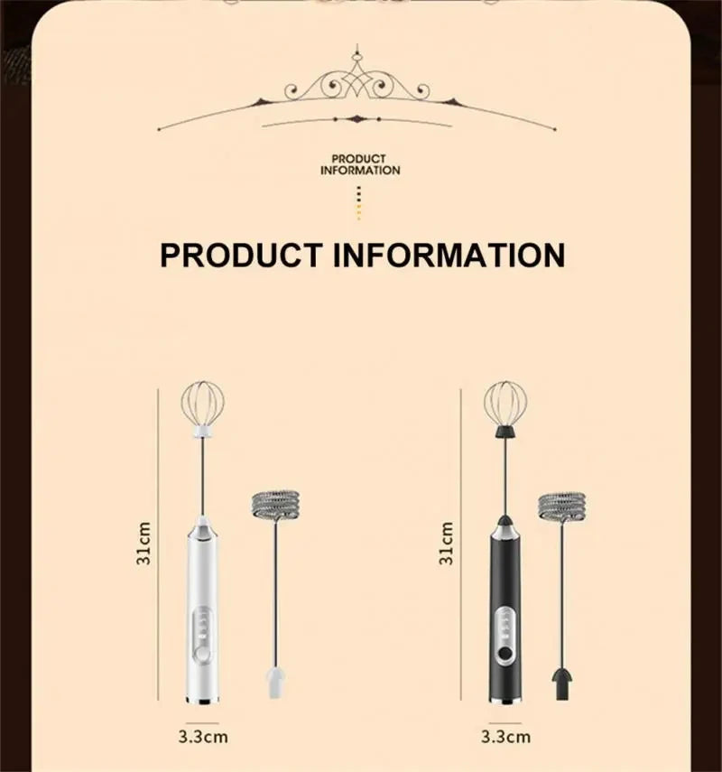 Handheld Double Stick Wireless Whisk Custard Foamer Mini Portable Blender Coffee Milk Three Speed Control Egg White Whipped USB