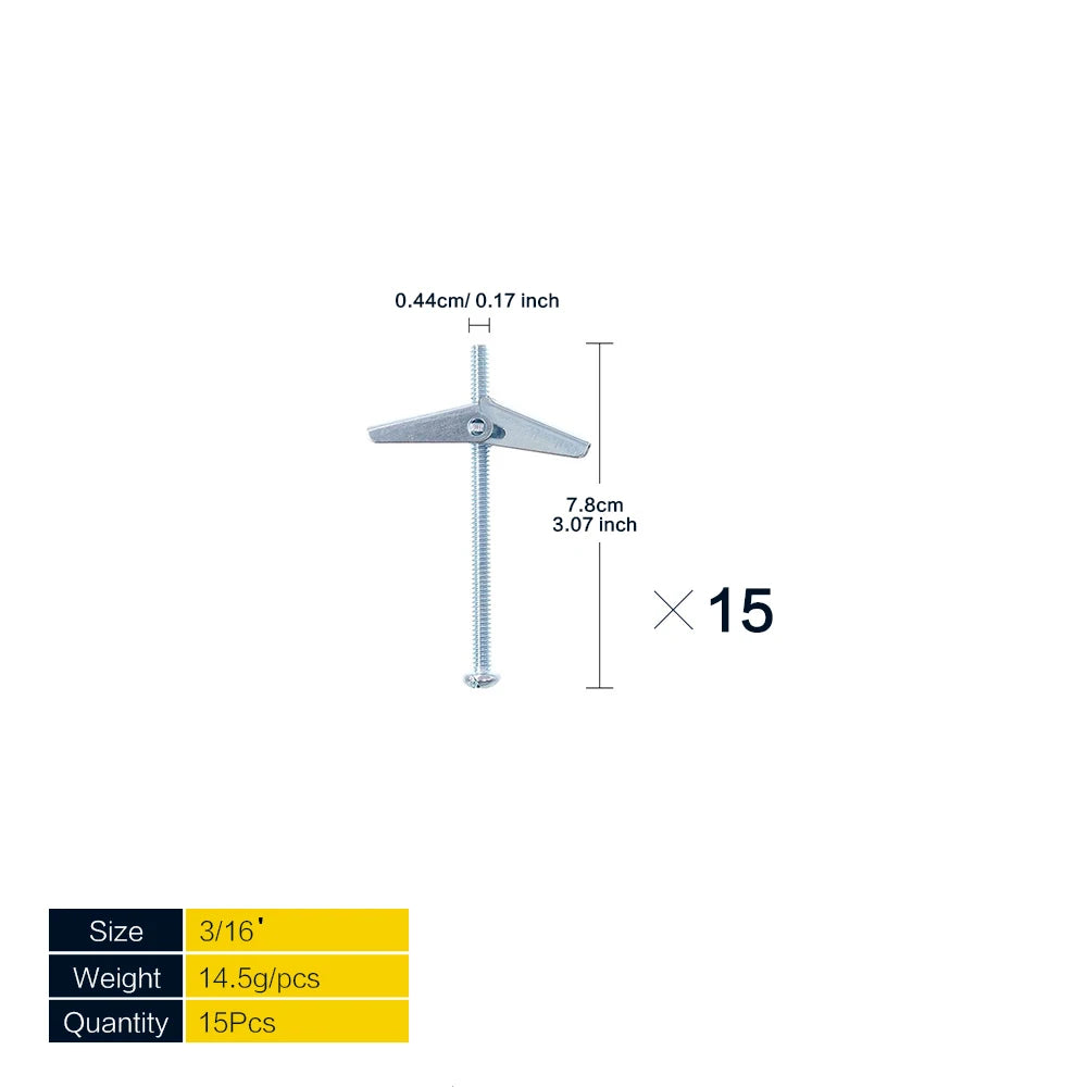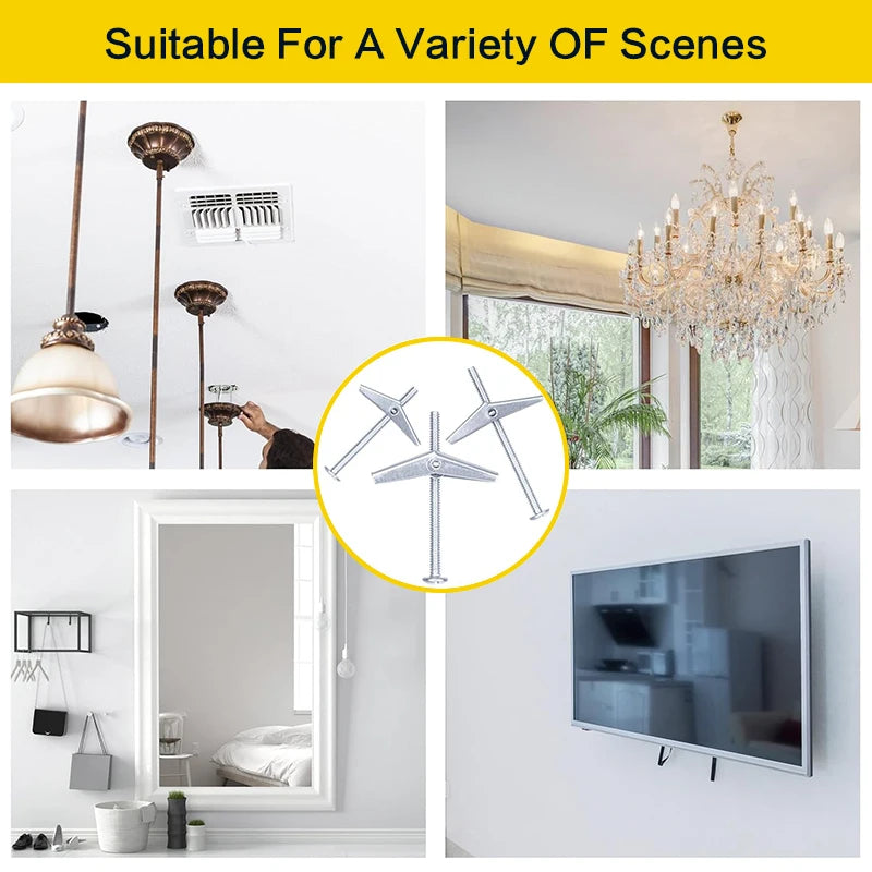 Heavy Duty Hollow Wall Anchors for Drywall Ceiling, Toggle Bolts and Wing Nut Kit, 3 Sizes Butterfly Anchors (1/8,3/16,1/4in)