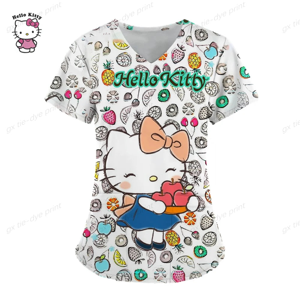Hello Kitty Print surgical uniforms pharmacy hospital nurse scrubs tops breathable beauty salon dentistry pet doctor overalls