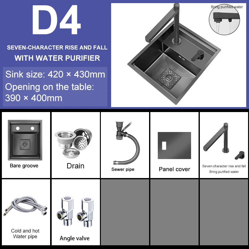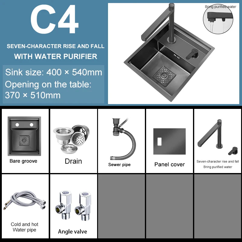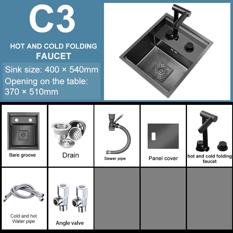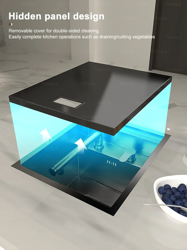 Hidden Kitchen Sink Bar Sink Kit Folding Faucet Drain Pipe,Drop-in Undermount Sink,Small Stainless Steel Sink for Workstation RV