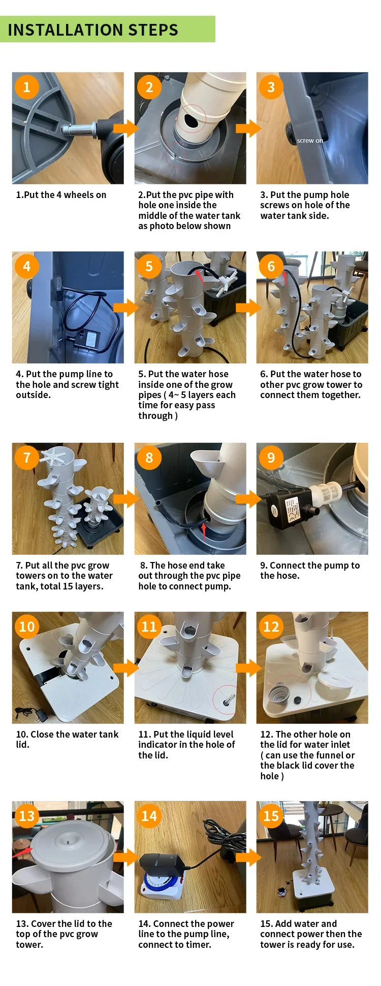 Hidroponia Garden Vertical Tower 14 Layer 70 Holes Torre Idroponica Verticale Hydroponics Growing System
