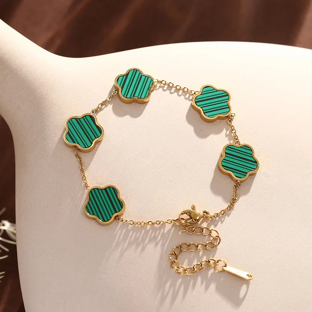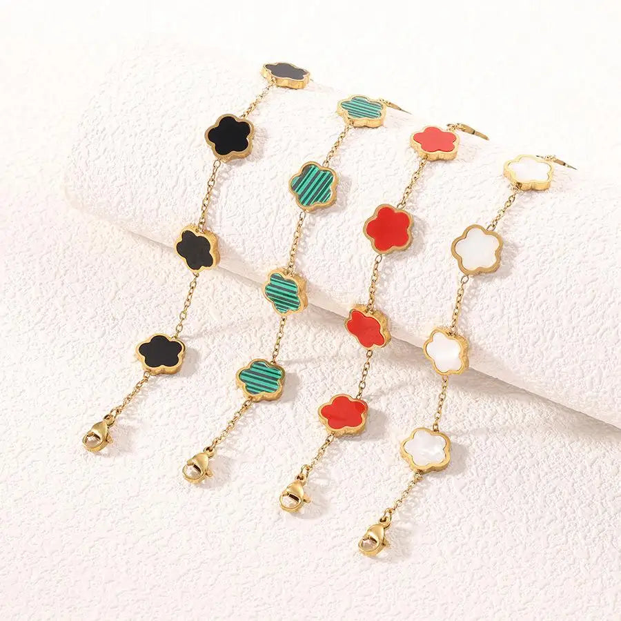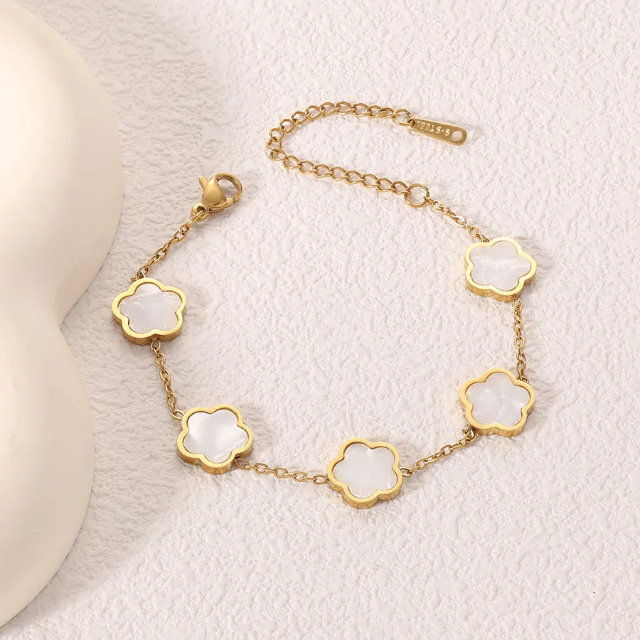High Quality Five-leaf Flower Shell Stainless Steel Bracelet For Women Black And White Couple Holiday Bracelet Party Jewelry INS