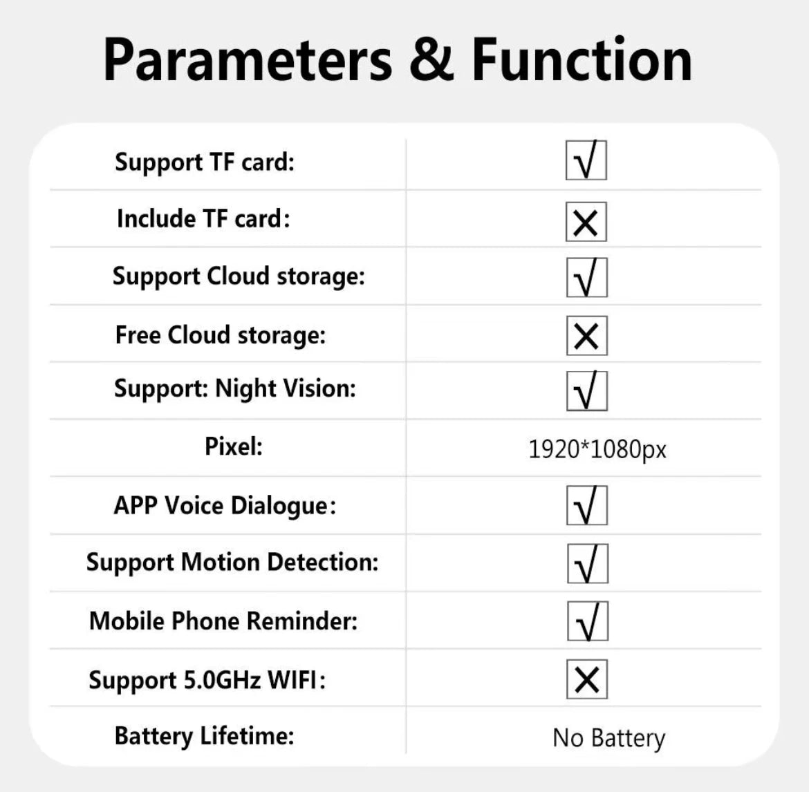 Home security camera, featuring night vision function, two-way audio, horizontal/vertical/zoom functions, used for motion tracki