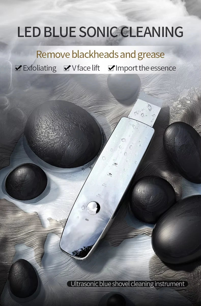 Home Use Ultrasonic Skin Scrubber Blackhead Remover Tool for Face Pore Cleaner with 2 Modes Waterproof Facials Skin Care Product